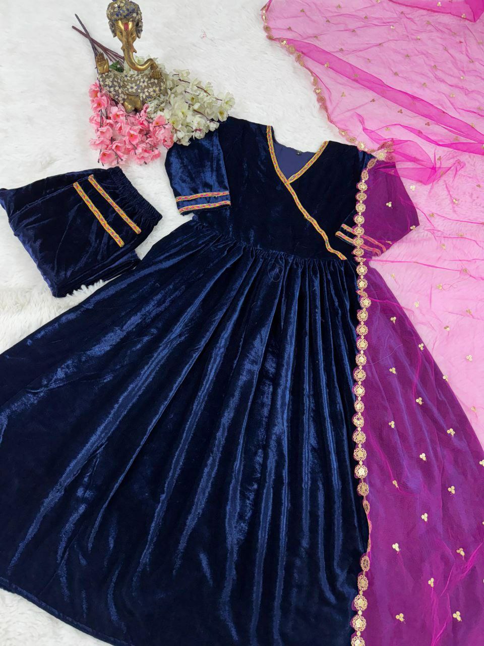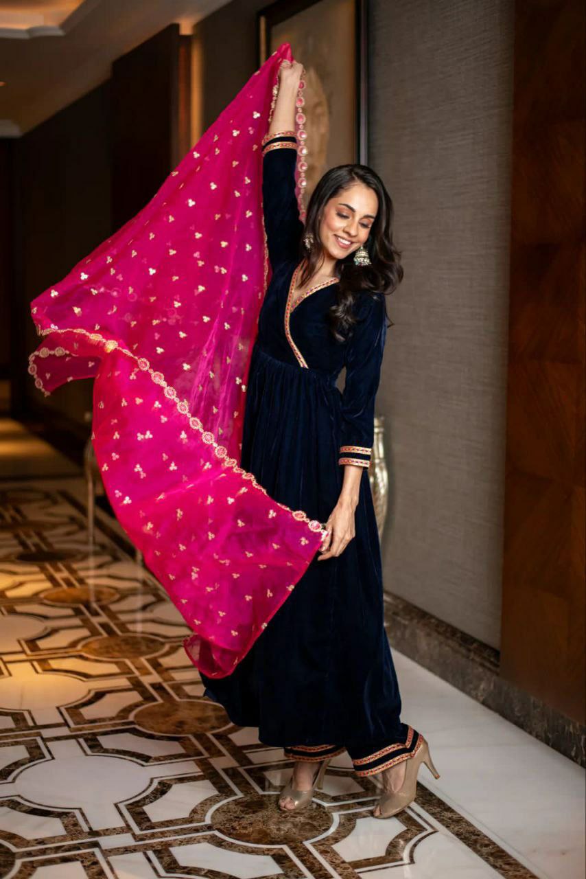 Top Fabric -This Set Features A Pure 9 Thousand Velvet With Embroidery Work