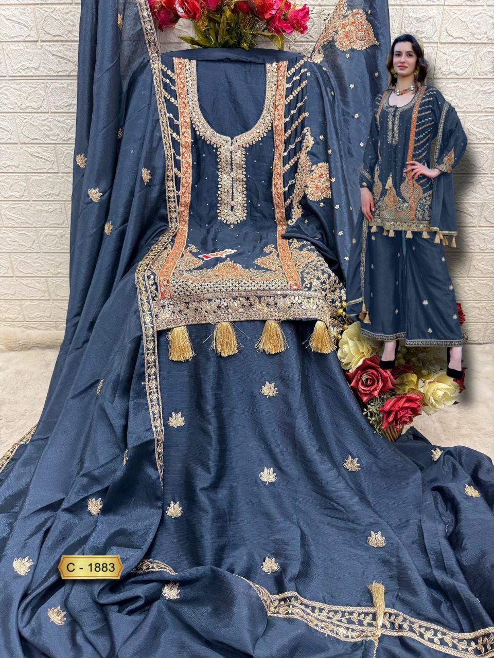CHINON EMBORODERY WORK KURTA AND PLAAZA SET FOR WOMEN WITH NEW DESIGN