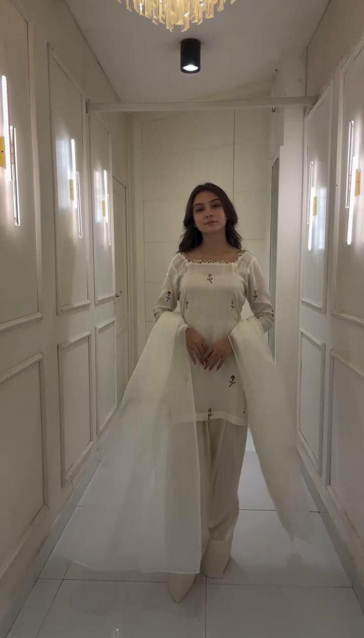 Chinon Silk And Heavy Micro Cotton With Embroidery Work With Elastic Farshi Palazzo Dress