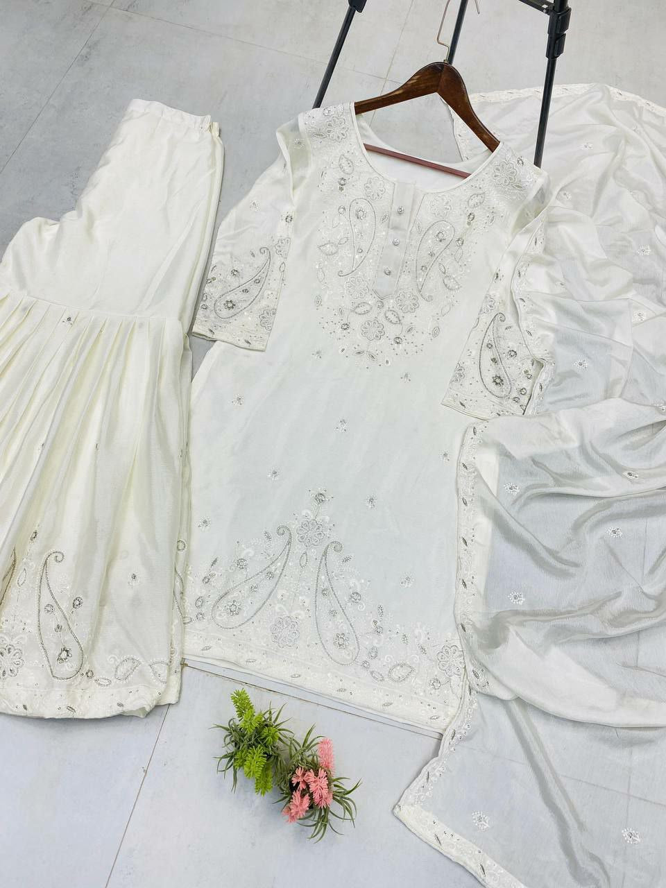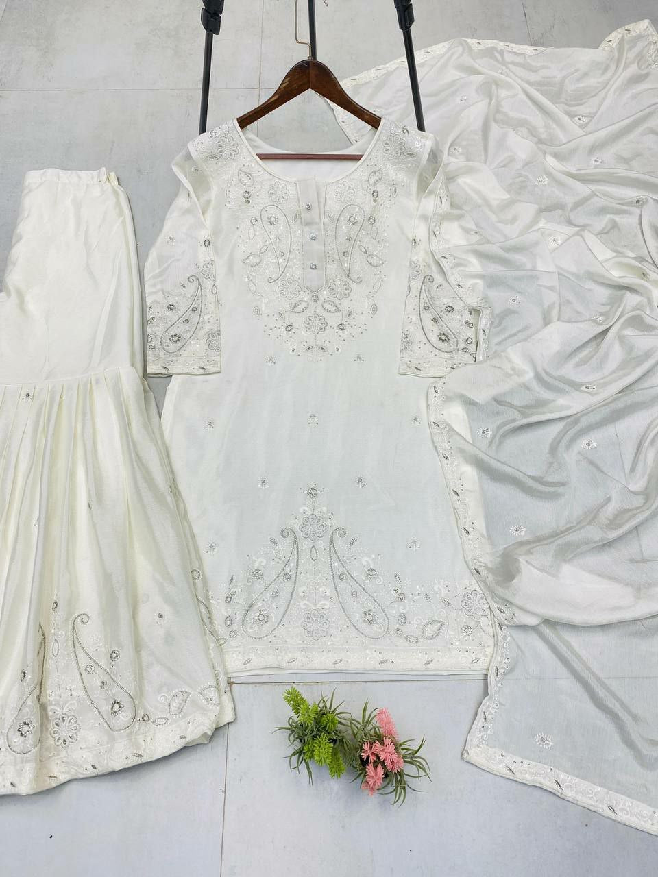 CHINON WITH MICRO INNER AND SEQUENCE EMBROIDERY WORK SHARARA DRESS