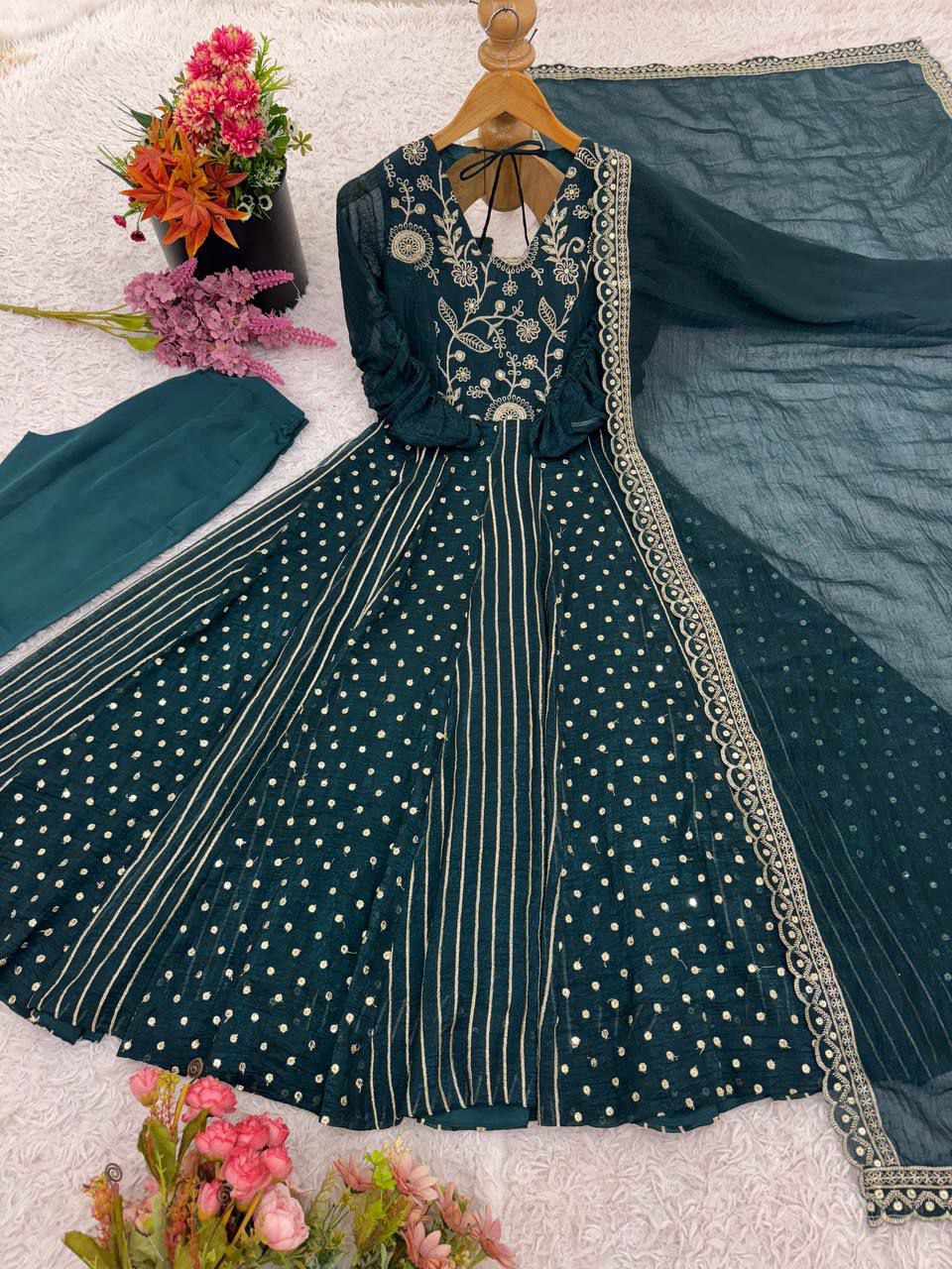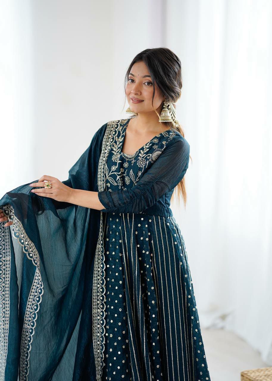 Crunchy Silk With Heavy Micro Cotton With Fully Flair And Embroidery Sequence Work Anarkali Gown