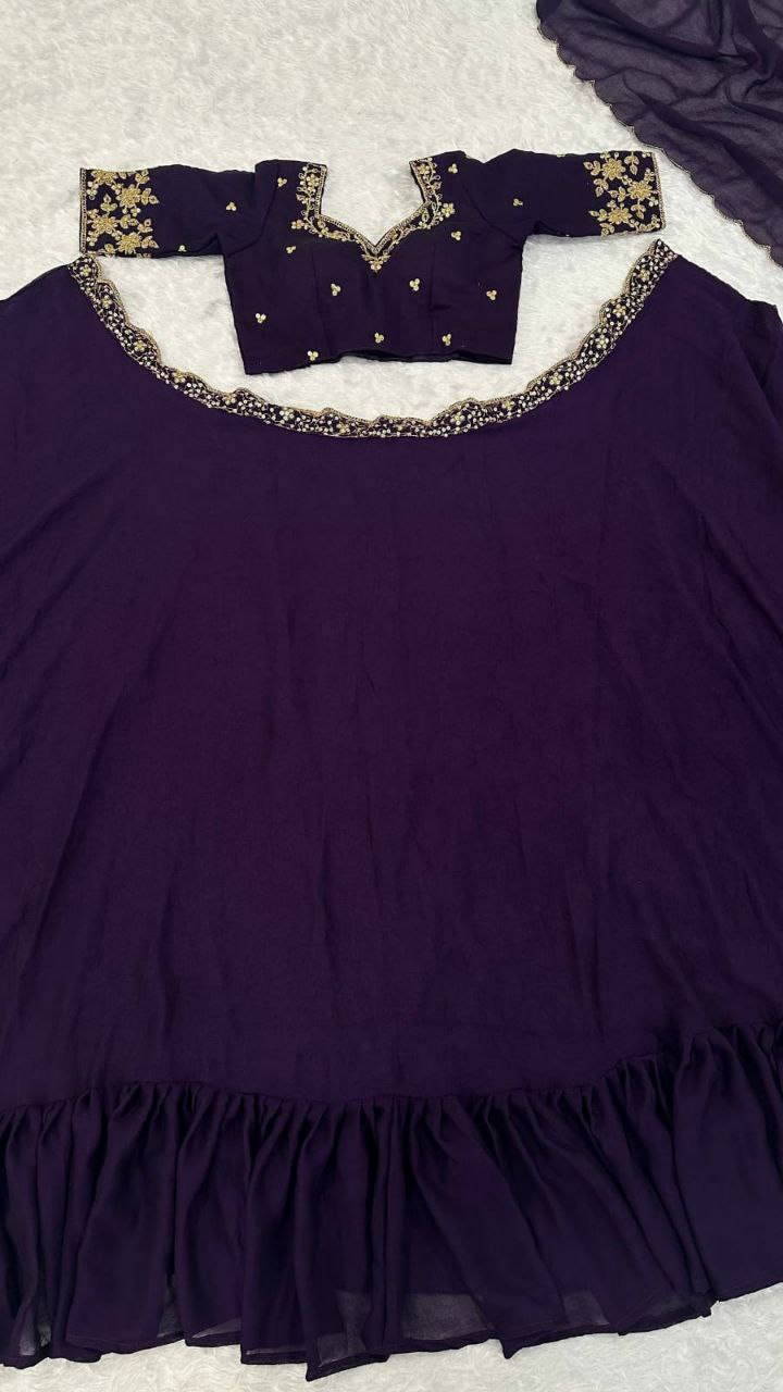 Diamond Crush Silk With Sequins & Dori Work On Waist Plys Flairy Ruffle Border With Chain Stitch Border Work Lehenga Choli