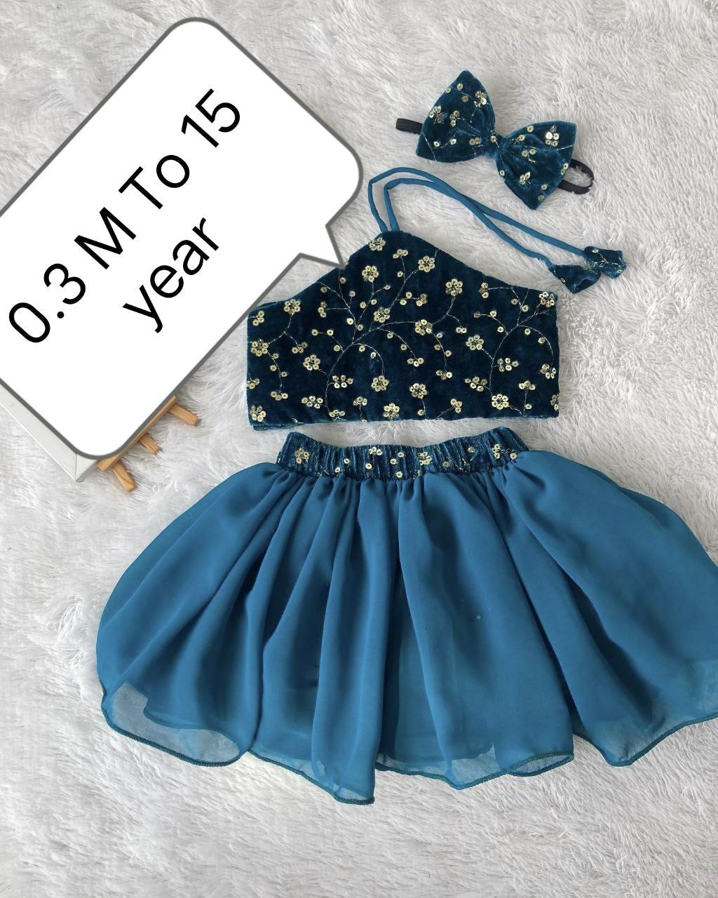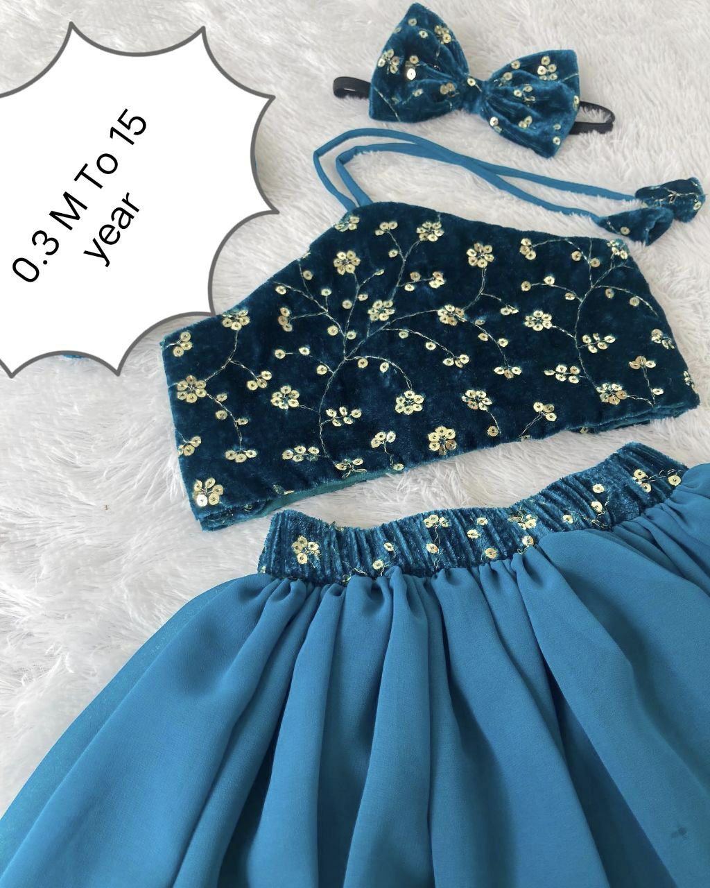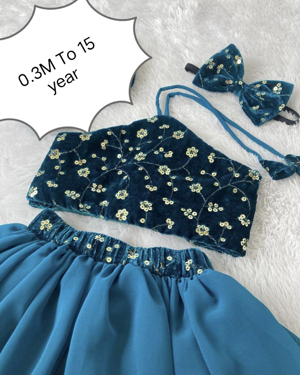 GEORGETTE FULL FLAIR SKIRT ATTACHED WITH VELVET BELT AND VELVET SEQUENCE WORK