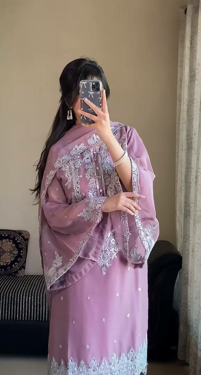 HEAVY FAUX GEORGETTE AND BEAUTIFUL EMBROIDERY SEQUENCE WORK PALAZZO KURTI