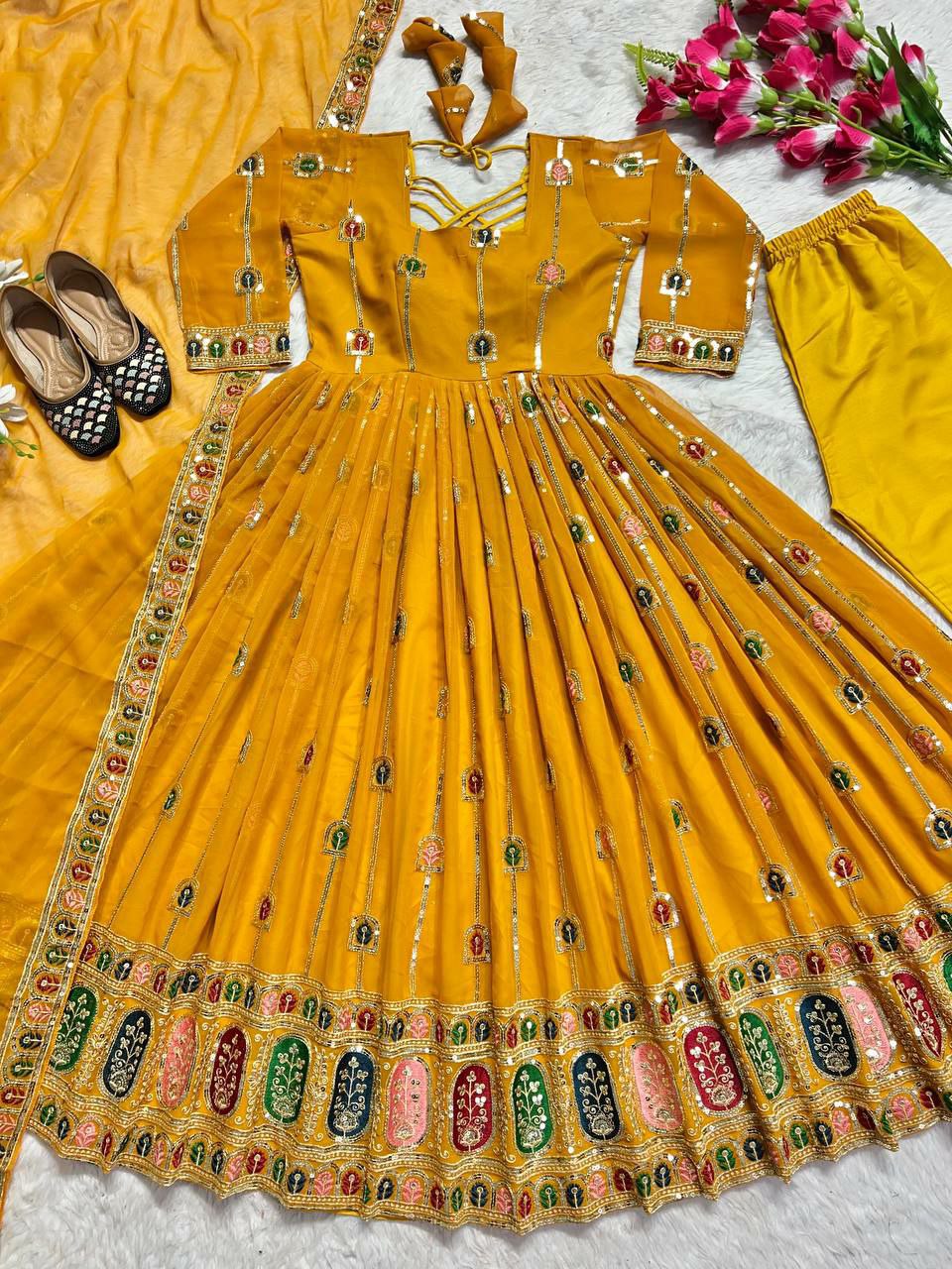 Heavy Faux Georgette With 5mm Sequence And Embroidery Work ( Fully Sleevs ) Haldi Wear