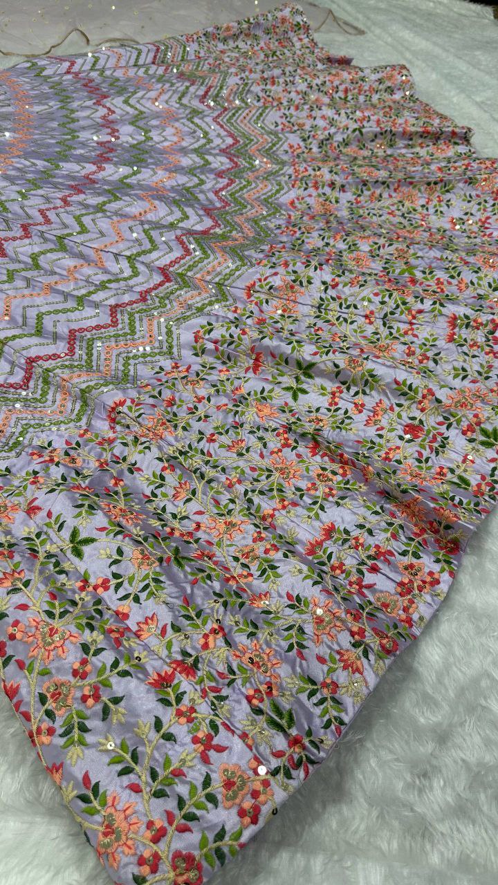 Heavy Satin Silk With Sequins & Thread Work + Tassel Border Work Blouse & Dupatta With Can Can Attach Lehenga Choli