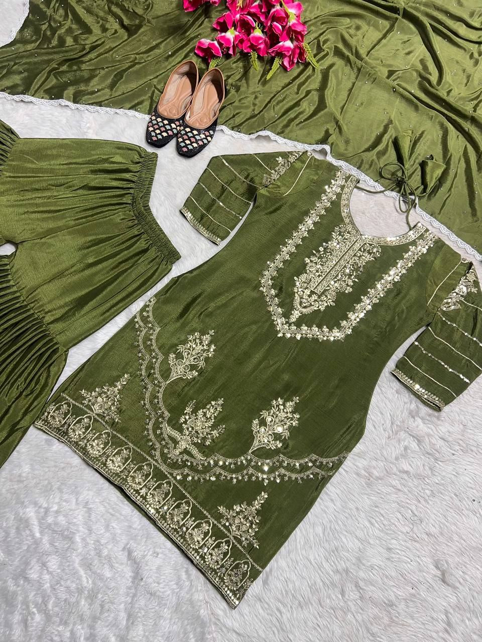 Hevay Pure Chinon Silk With Heavy Embroidery 5mm Sequence Work. (Fully Sleeve’s) Sharara Set