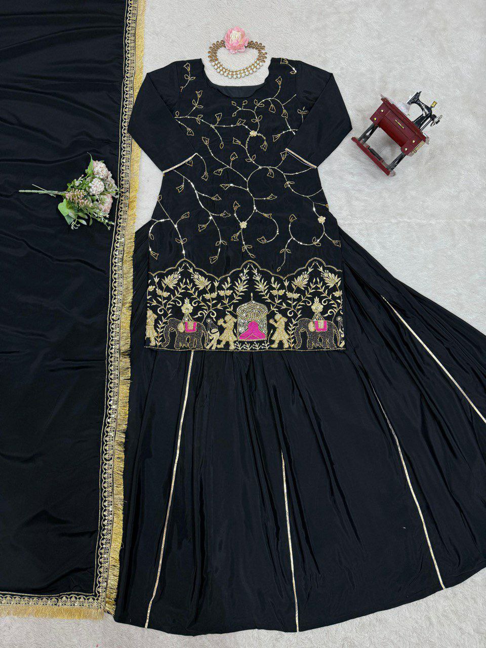 Natural Crepe Silk With Beads And Thread With Sequence And Thread With Four Side Lace Broder Top & Lehenga
