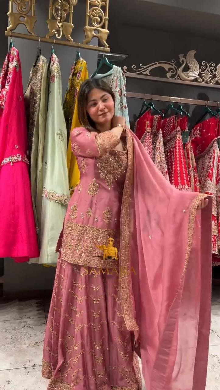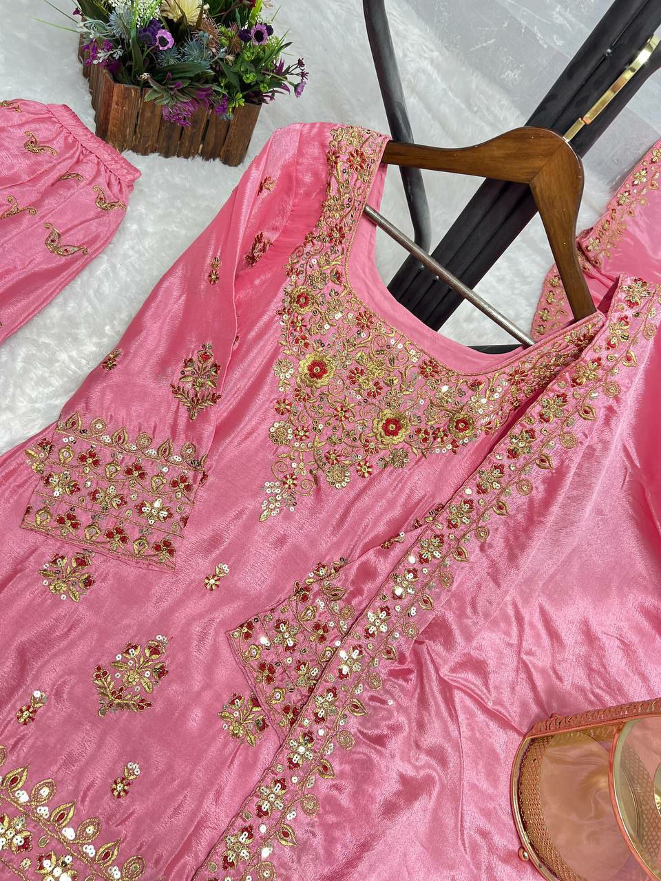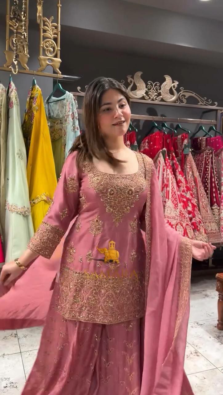 Pure Chinon Silk With Fancy Heavy Embroidery And Sequence Work With Lace Border Palazzo Dress