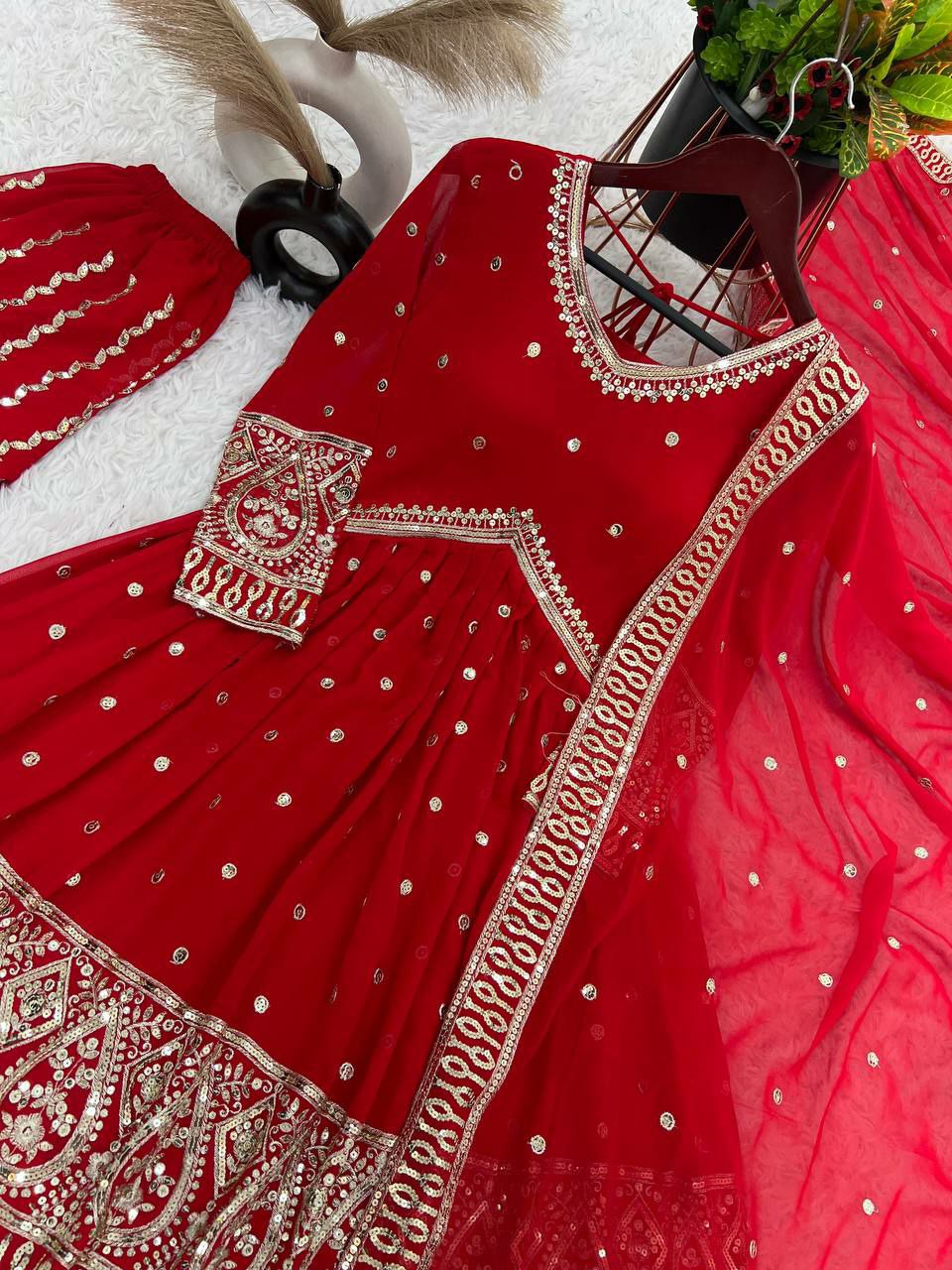 Pure Heavy Faux Georgette With Heavy Embroidery And Sequence Work With Full Sleeve Kurti Pair