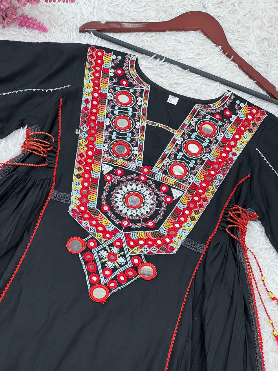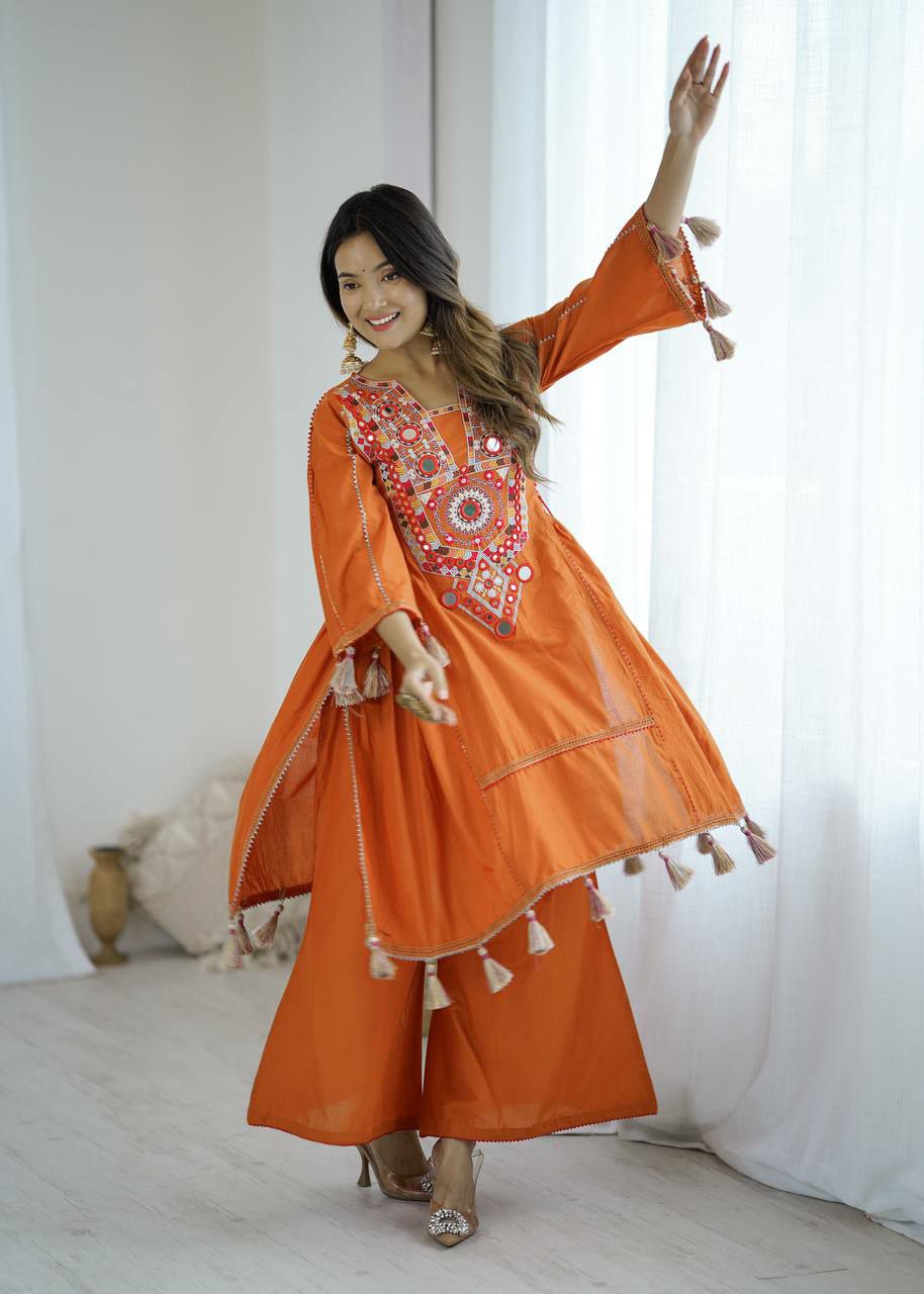Pure Khadi Cotton With Embroidery Sequence Work & Mirror Work With Pocket Palazzo Suit