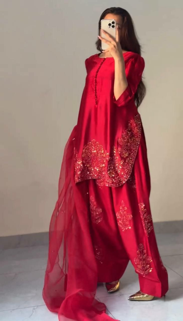 Top Fabric : Pure Natural Crepe Silk With Embroidery Sequence Work With Full Sleeve