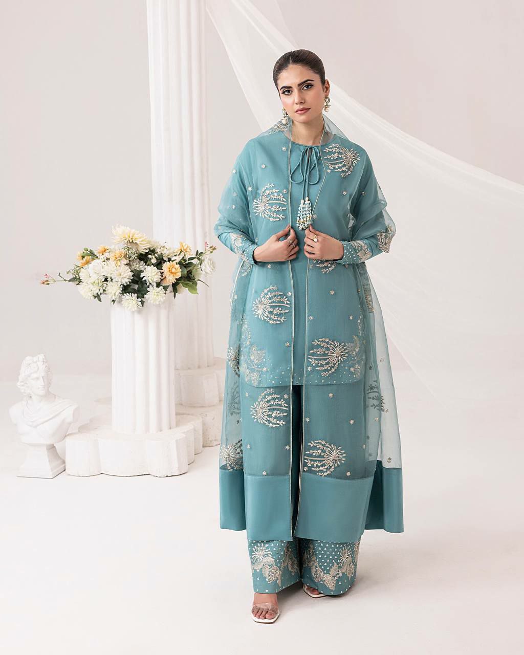 Pure Natural Crepe With Embroidery Sequence Work With Tassels With Patta Palazzo Dress