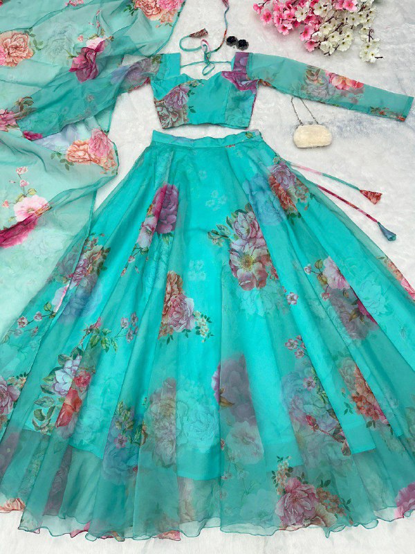 Pure organza silk floral printed lehnga