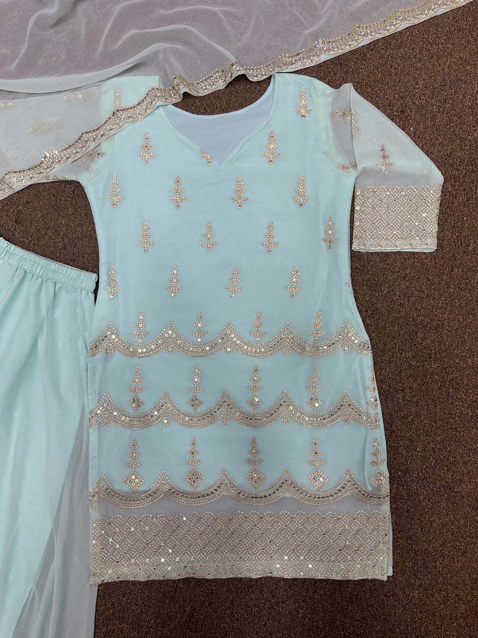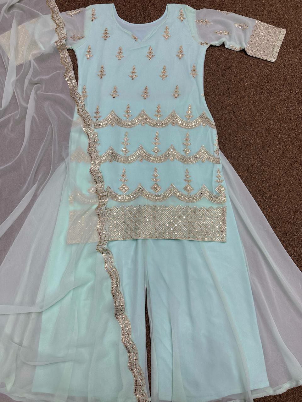 FABRIC DETAILS TOp FABRIC:- Heavy Fox Georgette WORK :- Heavy Embroidery Work SLEEVE :- full sleeve with heavy embroidery Work INNER :- Micro Cotton PENT FABRICE :- Heavy Butter Silk WORK - No DUPATTA FABRICE :- Organza silk WORK :-fancy Dubble Lear Dupatta  BASIC DETAILS Pent Length :- 40-42 Inc Up To XXL Top Length - 46-48 Inc Top Size :- XL FULL Stitched With XXL Margin Dupatta :- 2.1 MTR