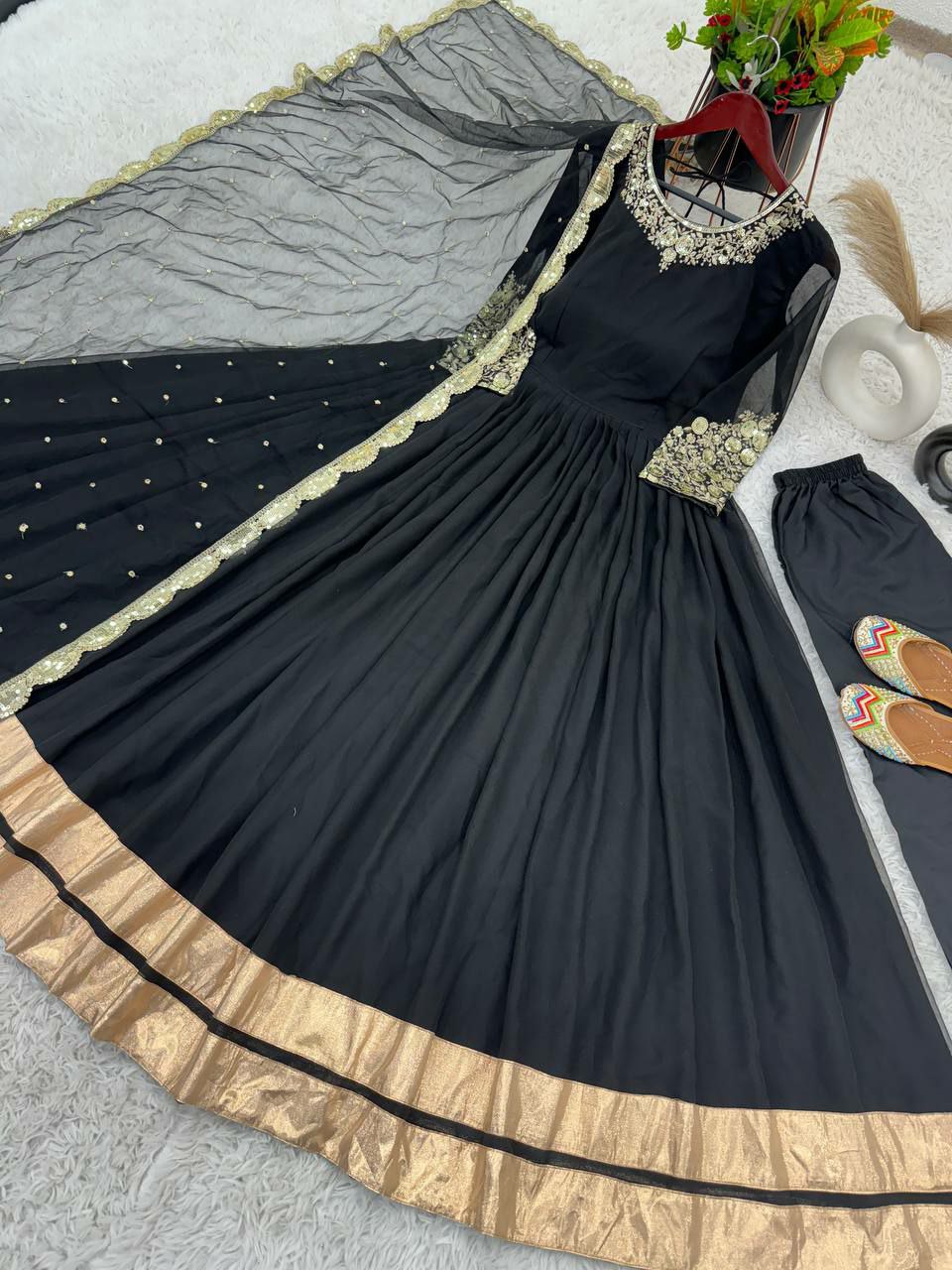 Trending New Black Heavy Georgette With Full Heavy Embroidery Sequence Work with Sleeve Gown