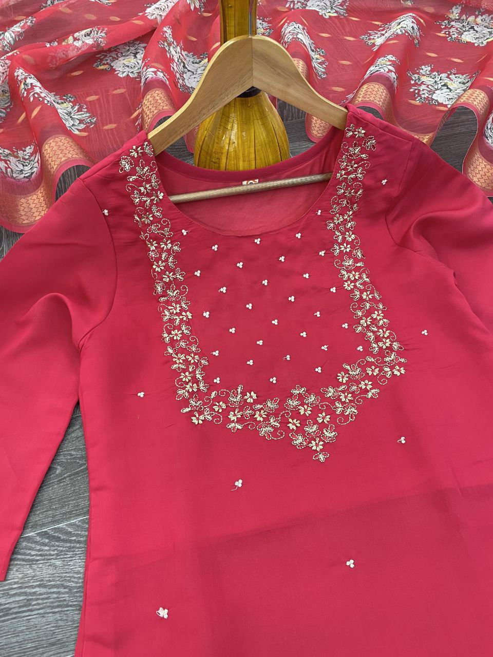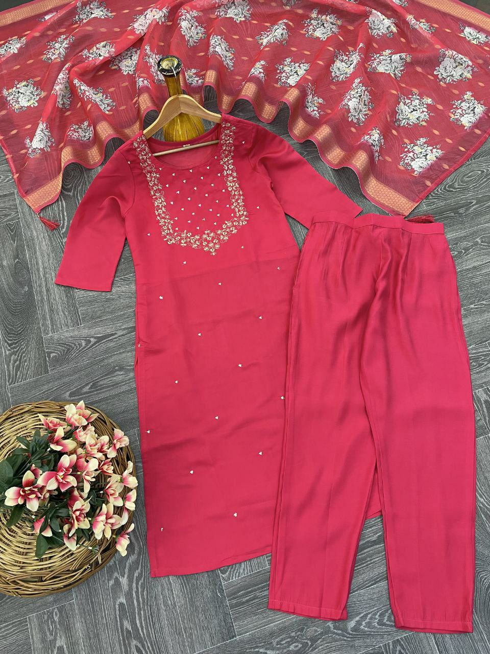VISCOSE CHANDERI WITH SEQUENCE CODING EMBROIDERY WORK KURTIS