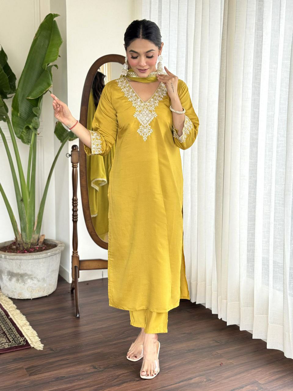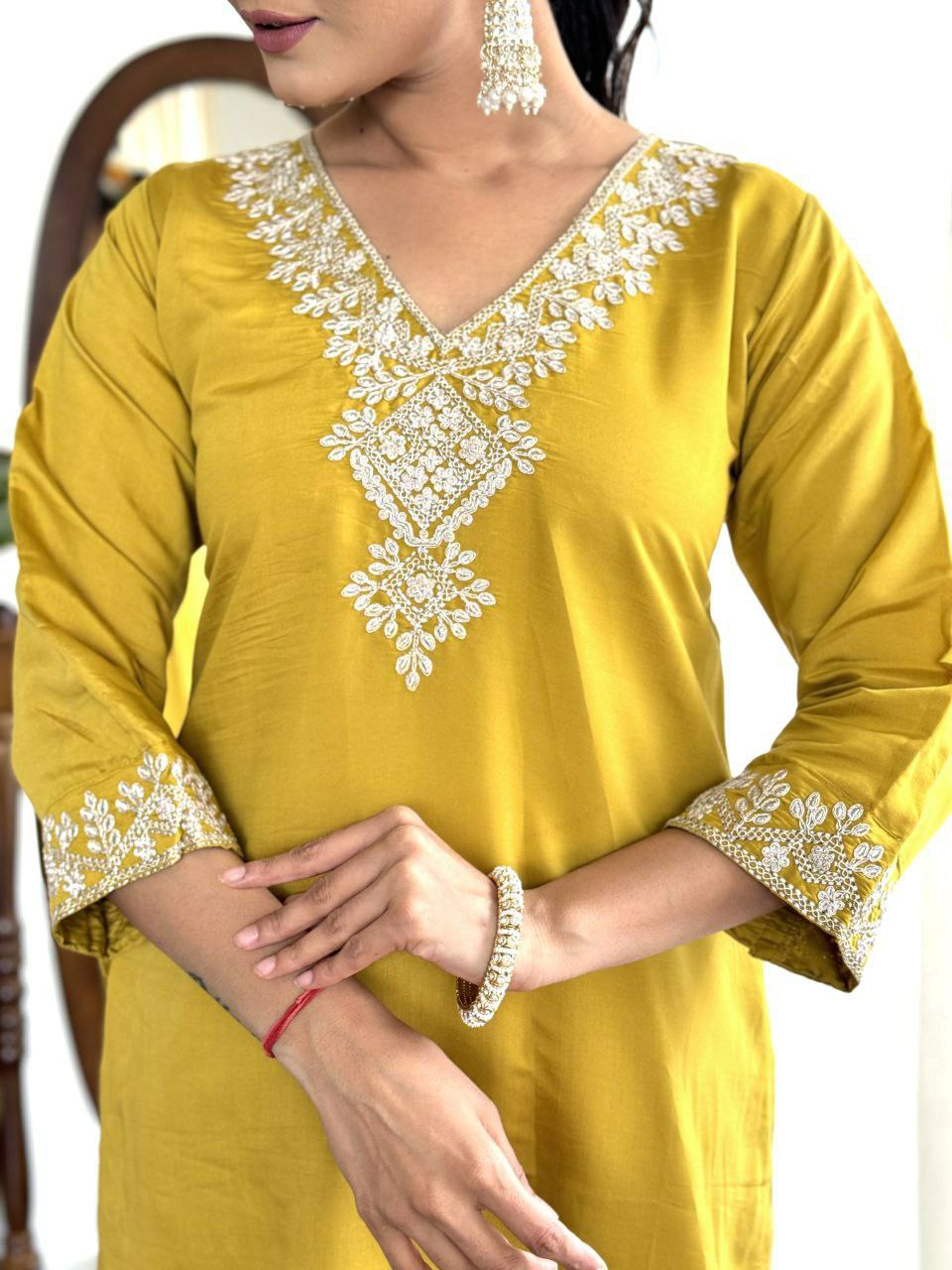 VISCOSE CHANDERI WITH SEQUENCE CODING EMBROIDERY WORK KURTIS