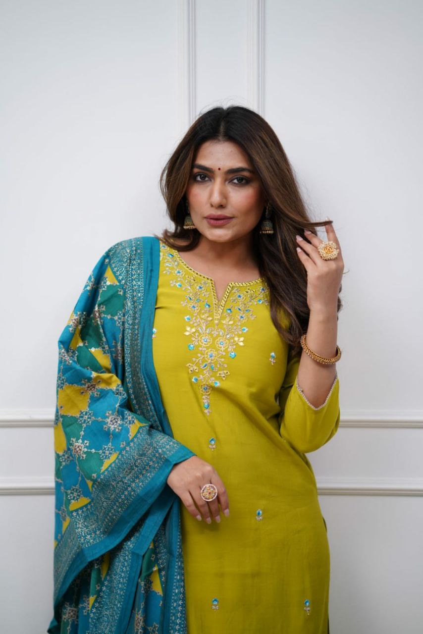 VISCOSE CHANDERI WITH SEQUENCE CODING EMBROIDERY WORK KURTIS