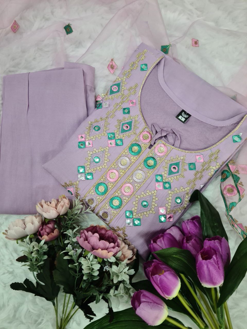 VISCOSE CHANDERI WITH SEQUENCE EMBROIDERY WORK KURTIS