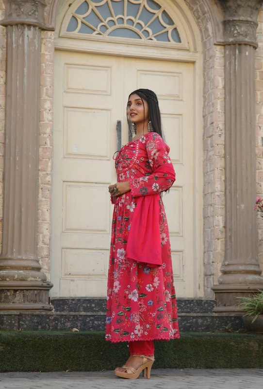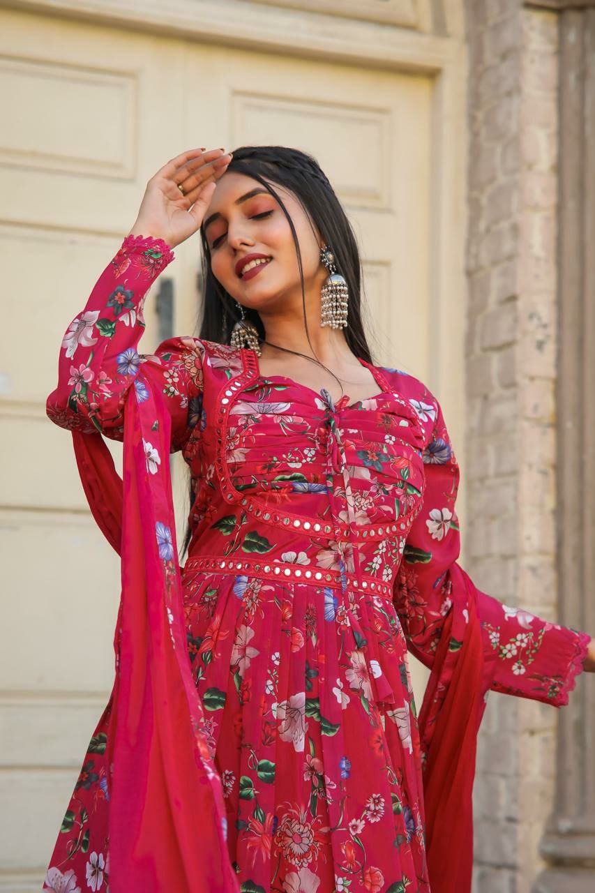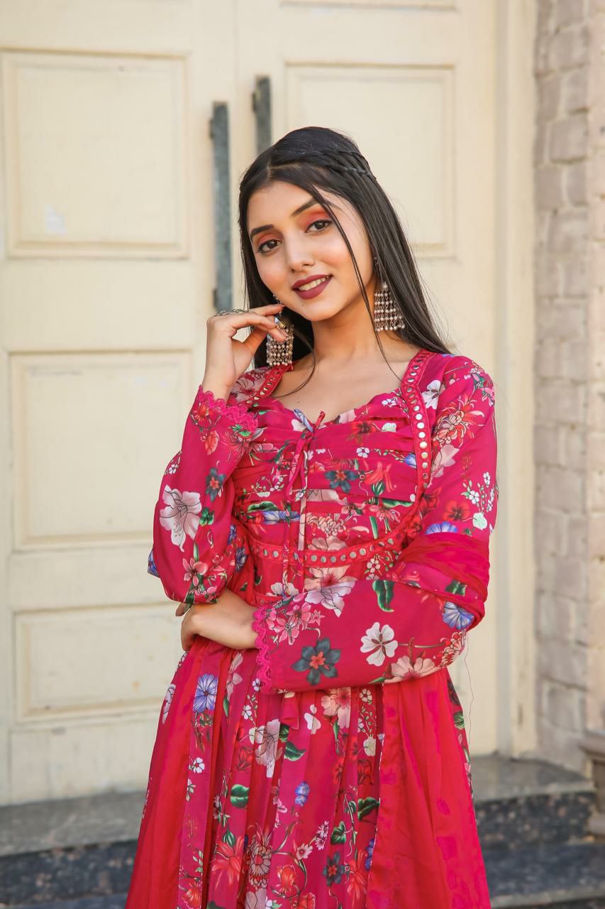 Chinon Print Pink Amazing kurti Set With Dupatta