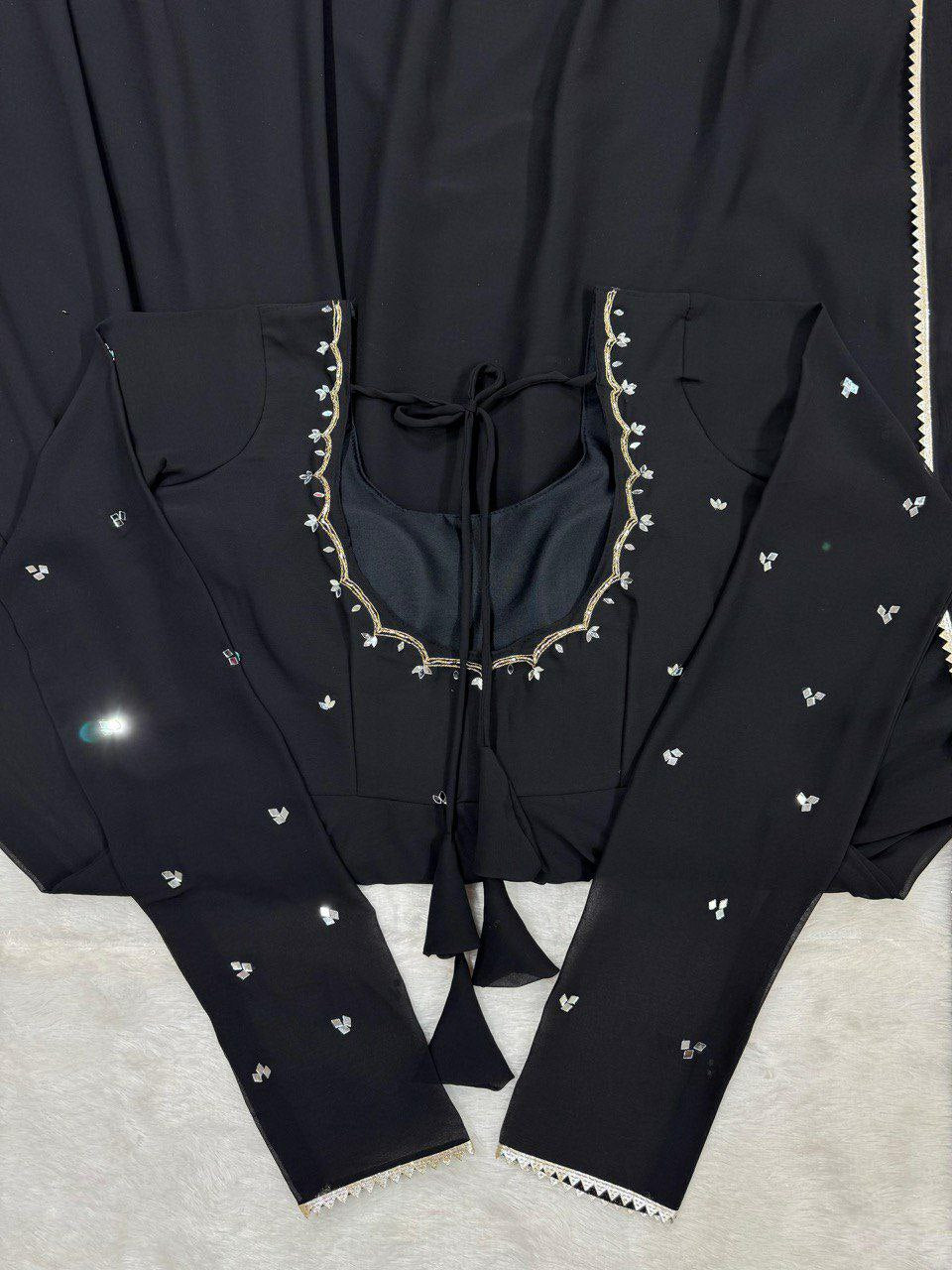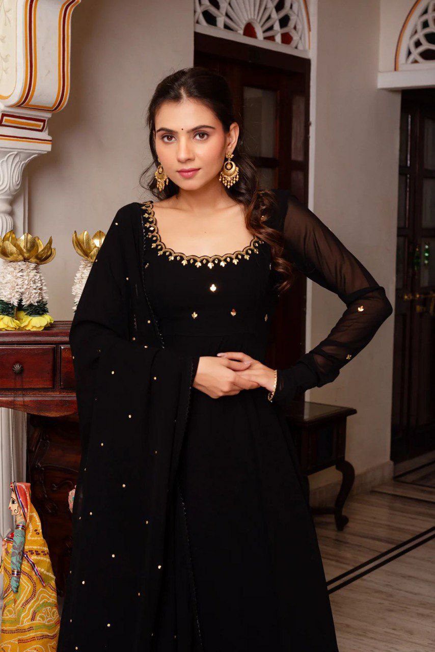 Faux Georgette With Micro Cotton And Handwork Rivet Moti With Four Side Lace Border Dress