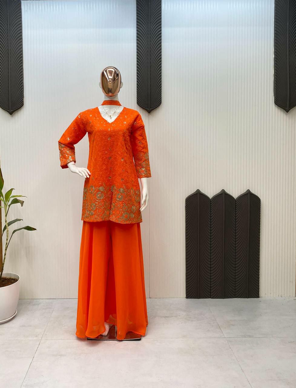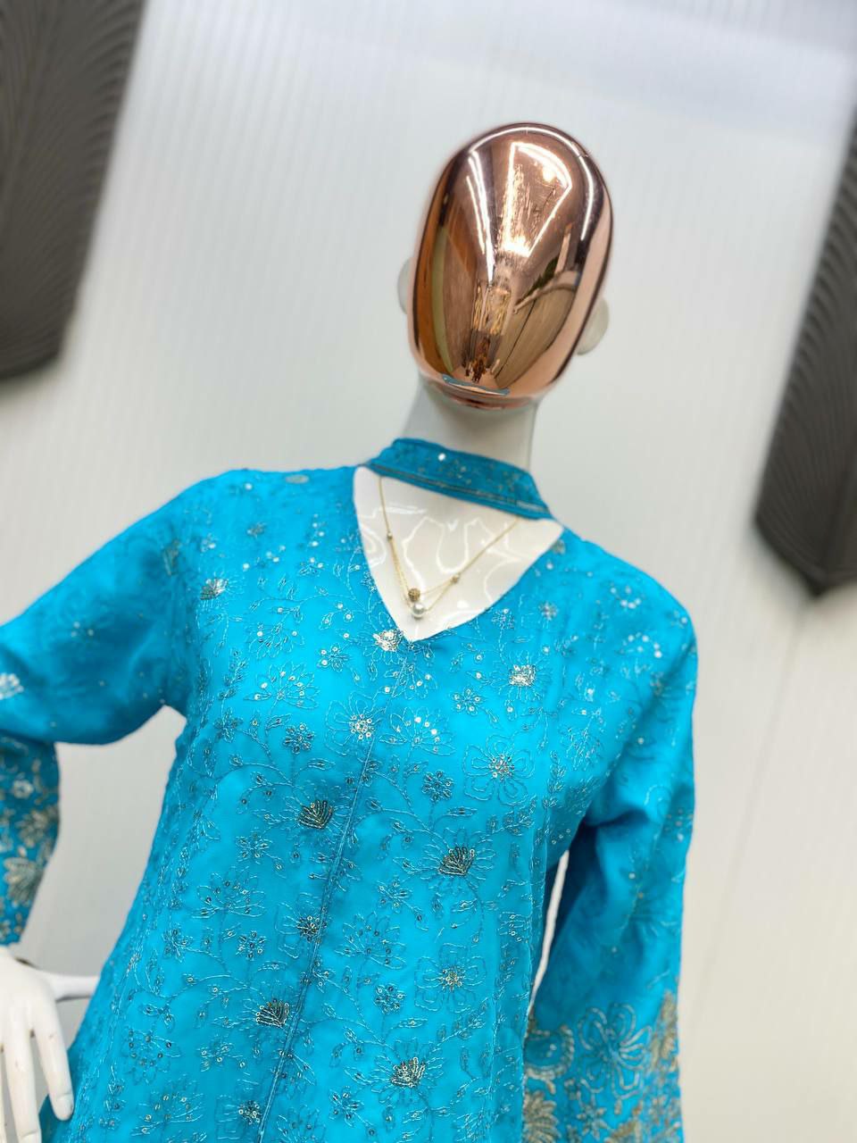 GEORGETTE SEQUENCE EMBROIDERY FULLSTITCHED PLAZZO DRESS FOR WOMEN