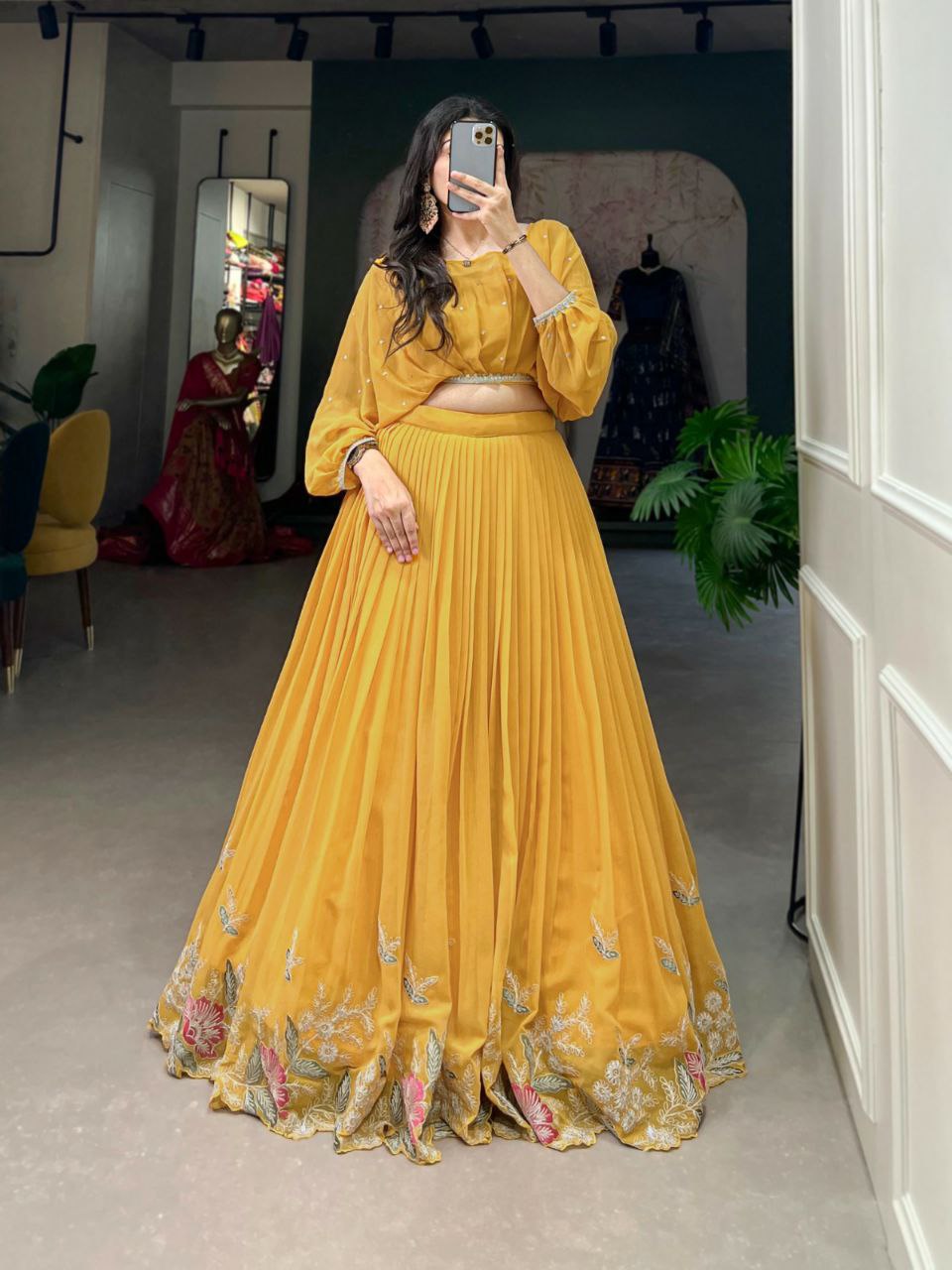 Georgette With Sequins Butties And Thread Embroidery Work With Lace Border With Can Can Lehenga Choli