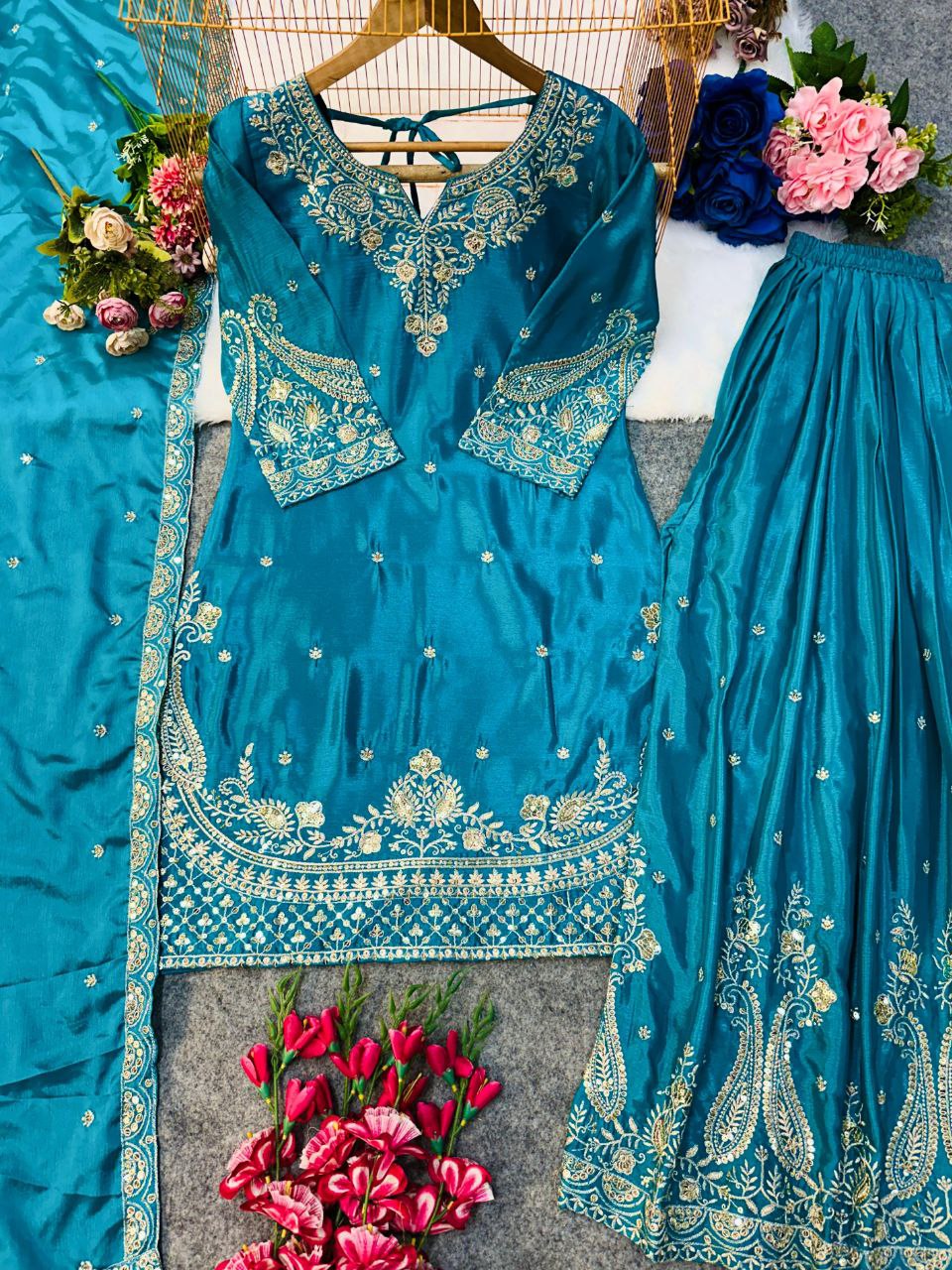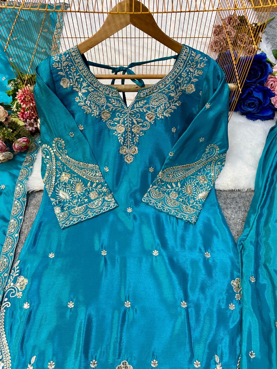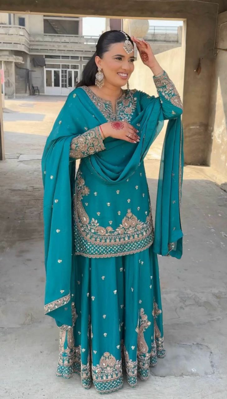 TOP FABRICS : HAVY CHINON SILK WITH HAVY EMBROIDERY WORK