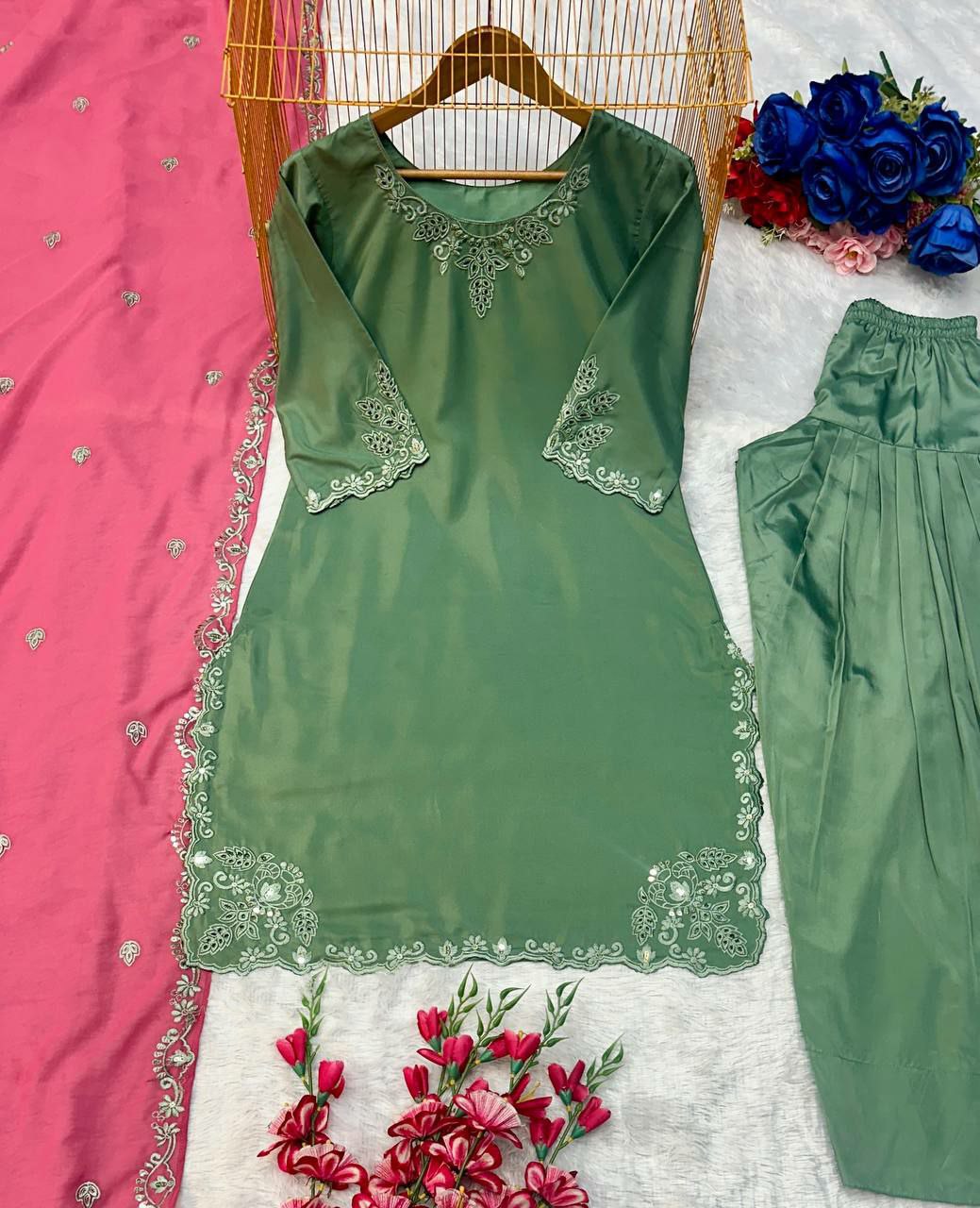 HAVY FRANCH CREP AND HAVY EMBROIDERY WORK WITH MICRO COTAN AND ELASTIC TOP & BOTTAM SUIT