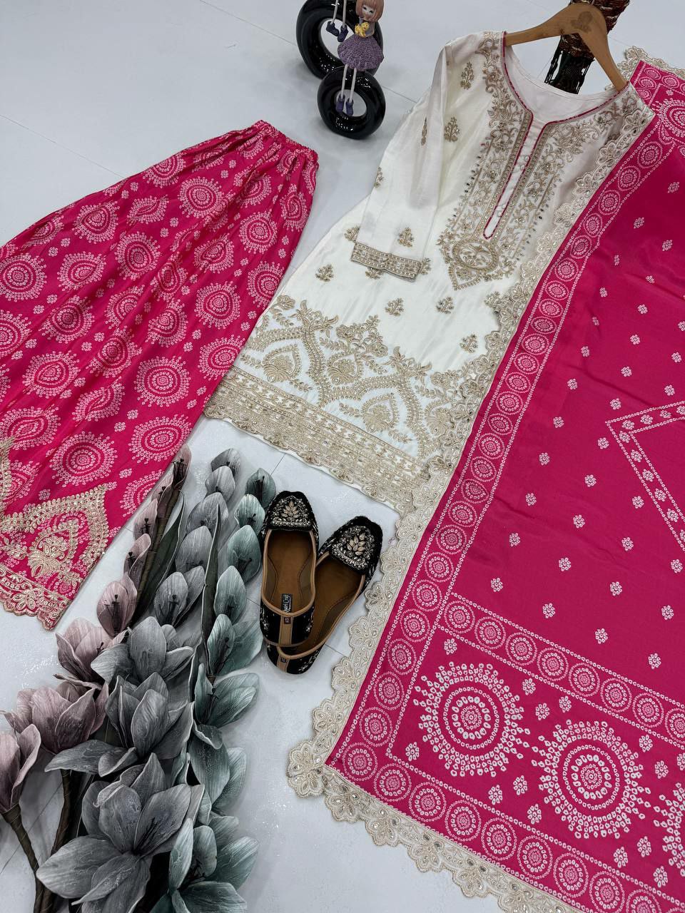 HEAVY CHINON AND HEAVY EMBROIDERED SEQUENCE CODING WORK WITH REAL MIRROR HAND WORK WITH DIGITAL PRINT SHARARA DRESS