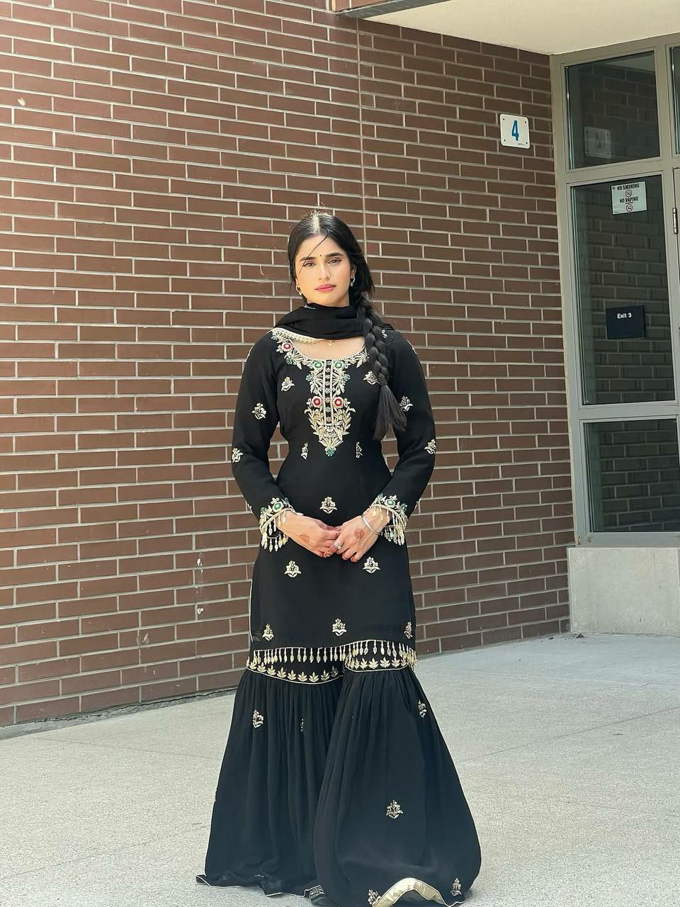 Heavy Chinon Silk With Heavy Micro Cotton And Embroidery Sequence Work And Heavy Lace Work Sharara Palazzo Dress