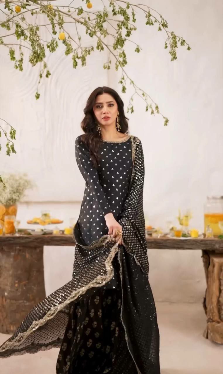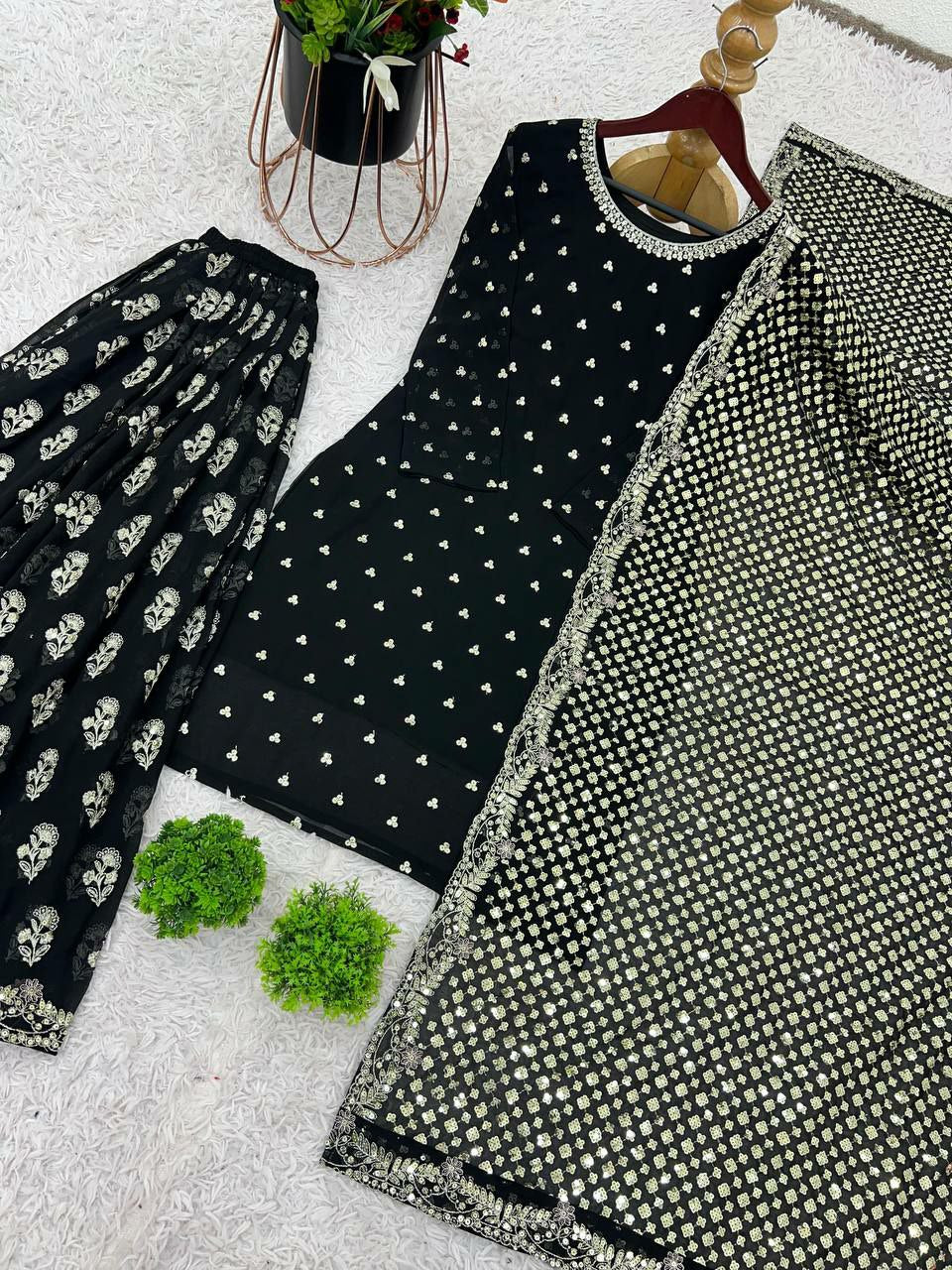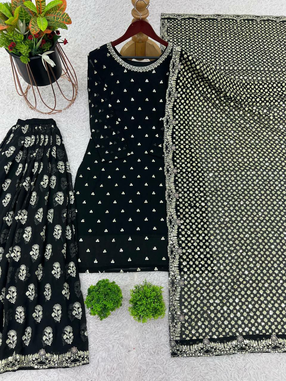 Heavy Faux Georgette And Heavy Embroidery Sequence With Fully Flair And Lace Border Sharara Palazzo Dress