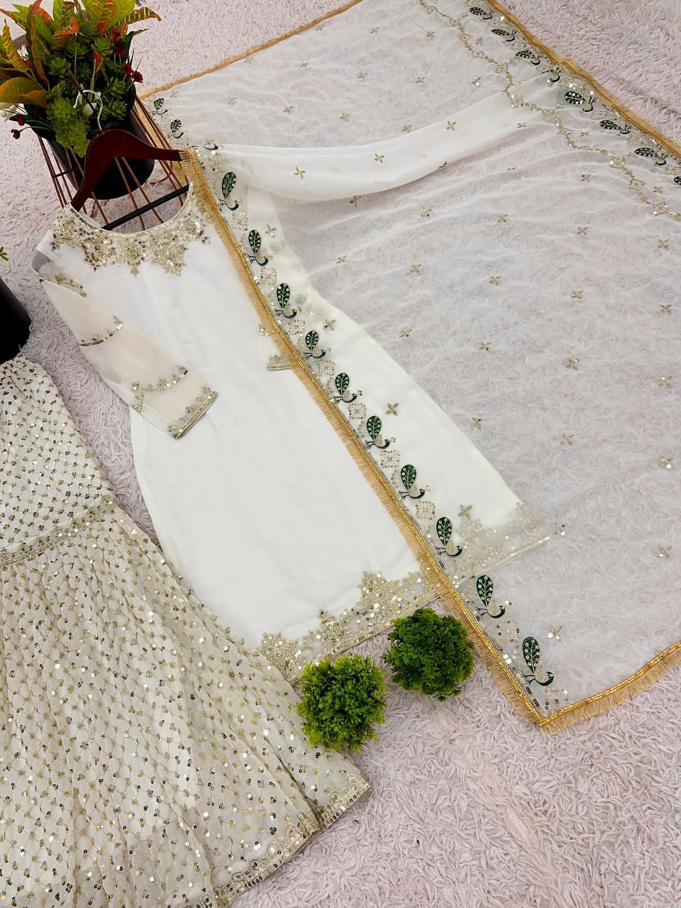 Heavy Faux Georgette And Heavy Micro Cotton With Embroidery Sequence Work And Lace Border Sharara Palazzo Dress
