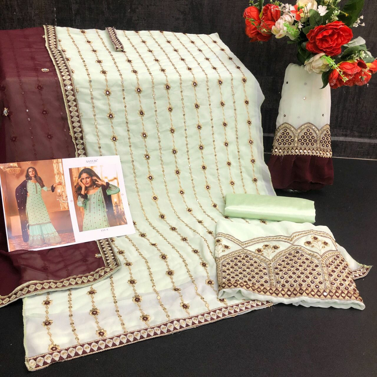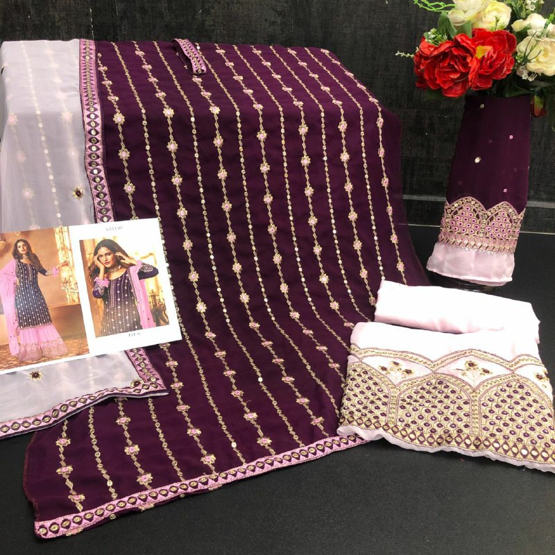 Heavy Faux Georgette With Embroidery Work With 7mm Sequence Work Kurti Set