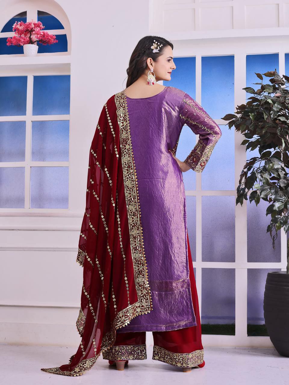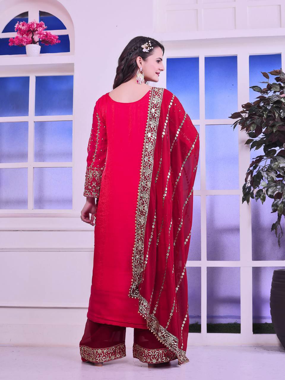 Heavy Frendy Silk & Heavy Faux Georgette With Beautiful Embroidery And Sequence Work With Riveted Moti Work Palazzo Dress