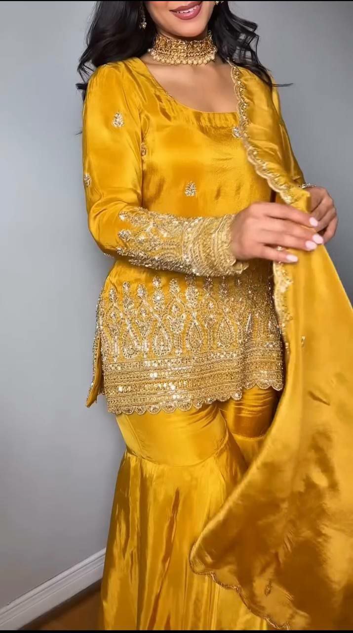Heavy Natural Crepe Silk With Heavy Micro Cotton And Heavy Embroidery Sequences Work With Latkan Dori Sharara Palazzo Dress