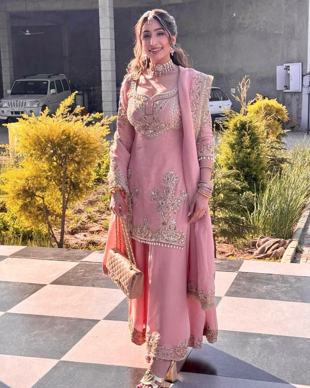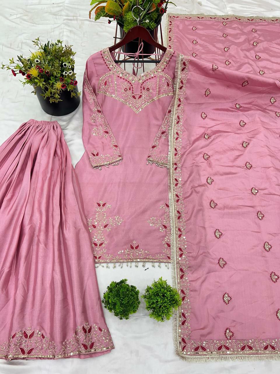 Heavy Pure Chinon And Heavy Micro Cotton Embroidery Sequence With Fully Flair Sharara Palazzo