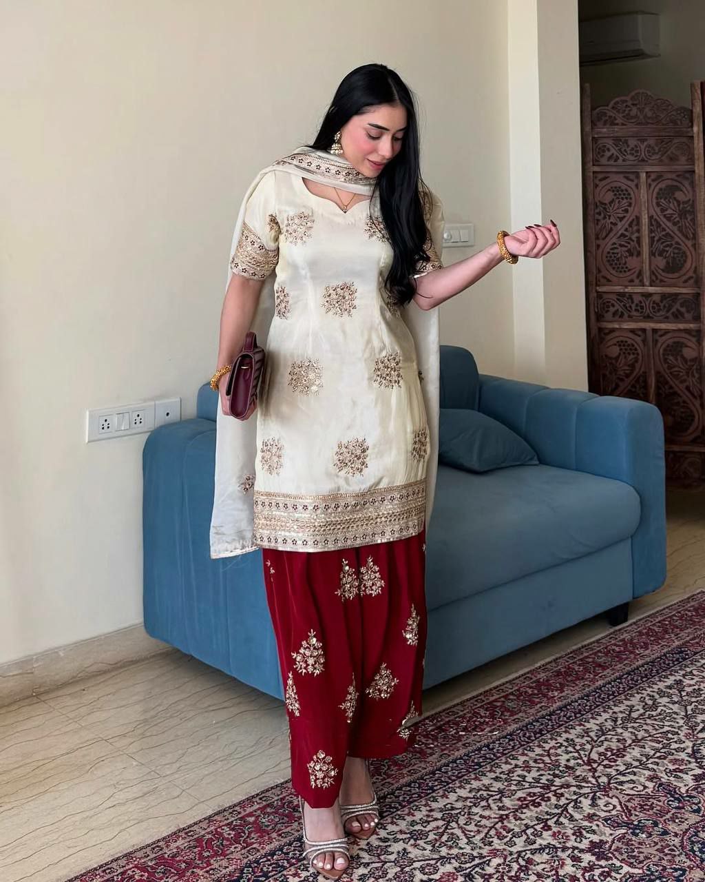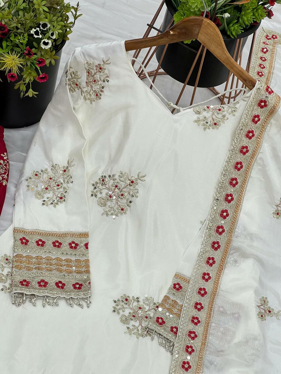 HEAVY PURE CHINON SILK WITH EMBROIDERY FULLY STITCH SALWAR SUIT