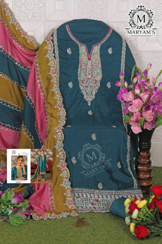 Heavy Vichitra silk With Multi Thread& Jari With Sequence & Codding Embroidery Stitch Work+Dimad