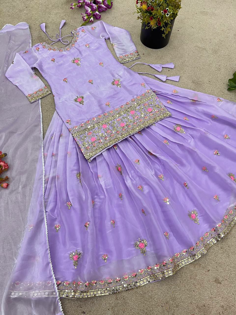 Lehenga Fabric : Jimmy choo Silk With Heavy 5mm Embroidery Sequence Work