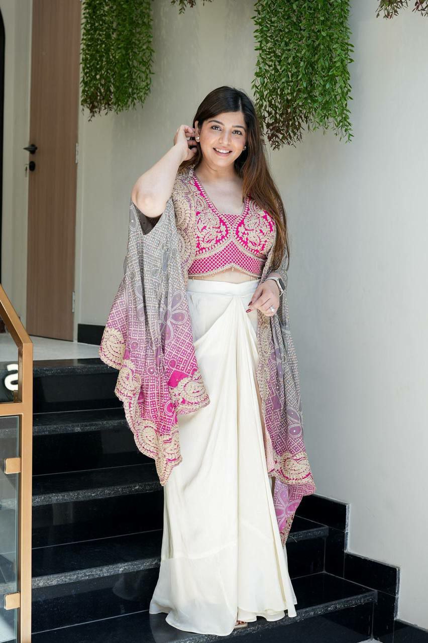 MONO SILK AND FRENCH CREAPE WITH CORDING SEQUENCE EMBROIDERY WORK TUBE BLOUSE & DRAPED SKIRT