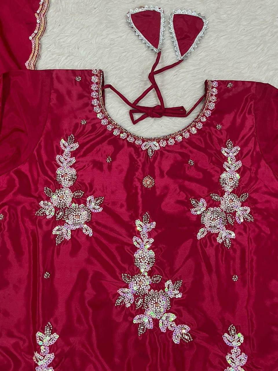 Top Work :-  Bids Hand Work With 5mm Sequence Multi Needle Embroidery Work, Zari Work.