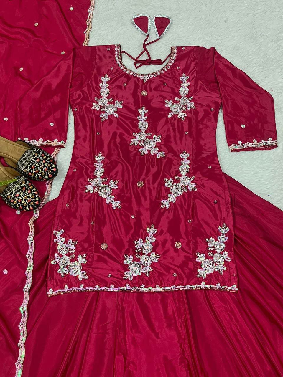 Natural Crepe Silk With Sequence Multi Needle Embroidery Work And Zari Work Top & Lehenga