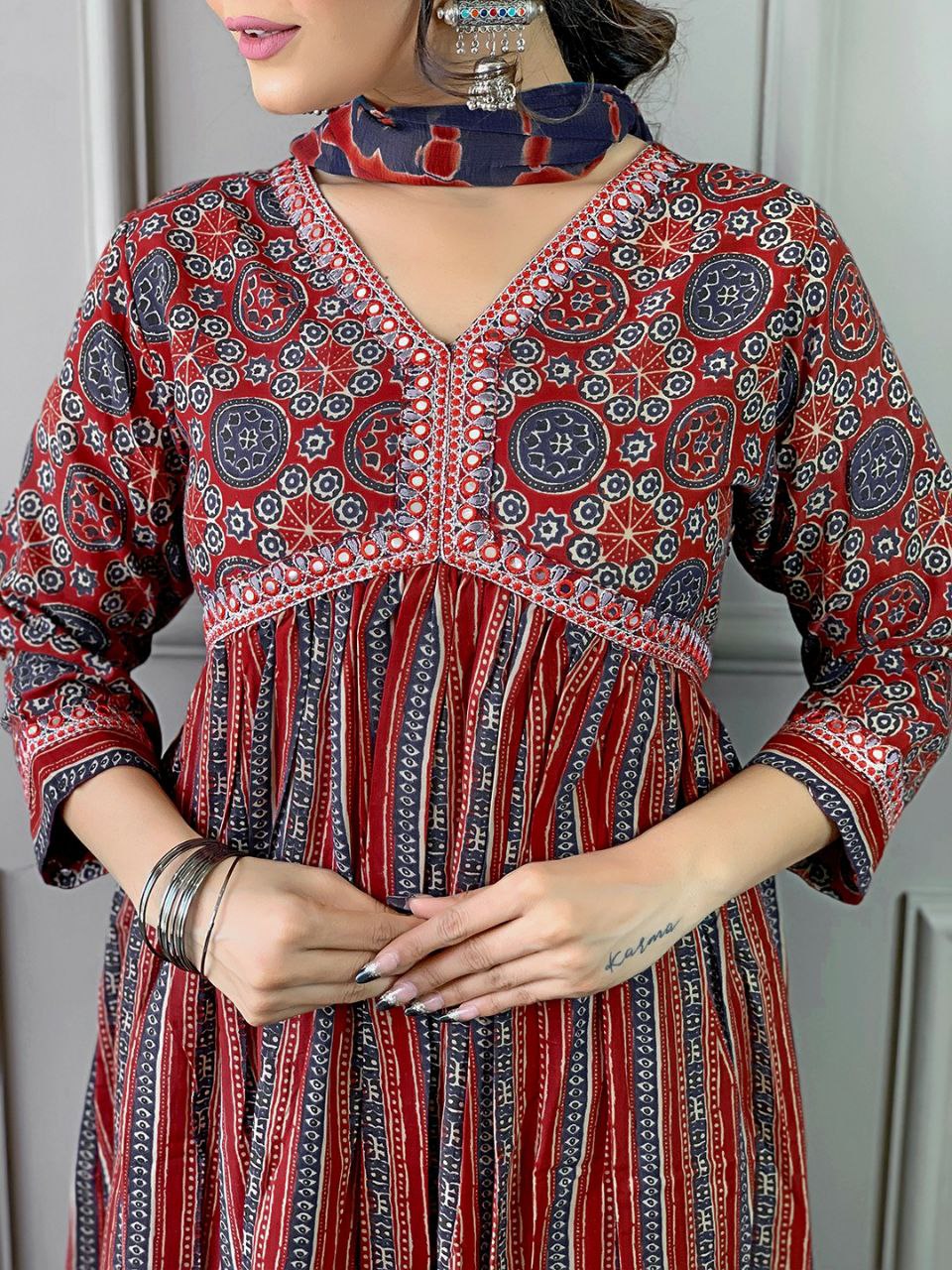 PURE COTTON WITH PRINT AND EMBROIDERY KURTI FOR WOMEN