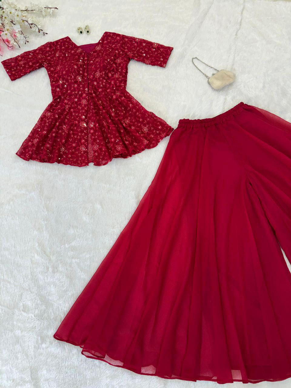 Pure Georgette And Blazer Style Embroidery Sequins Work Fully Stitched Palazzo