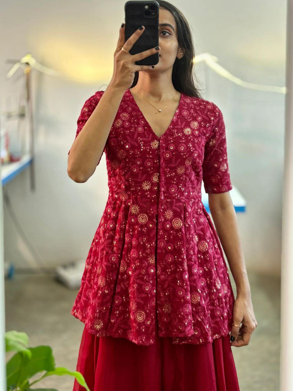 Top  - Blazer Style Embroidery Sequins work top of Georgette fully stitched