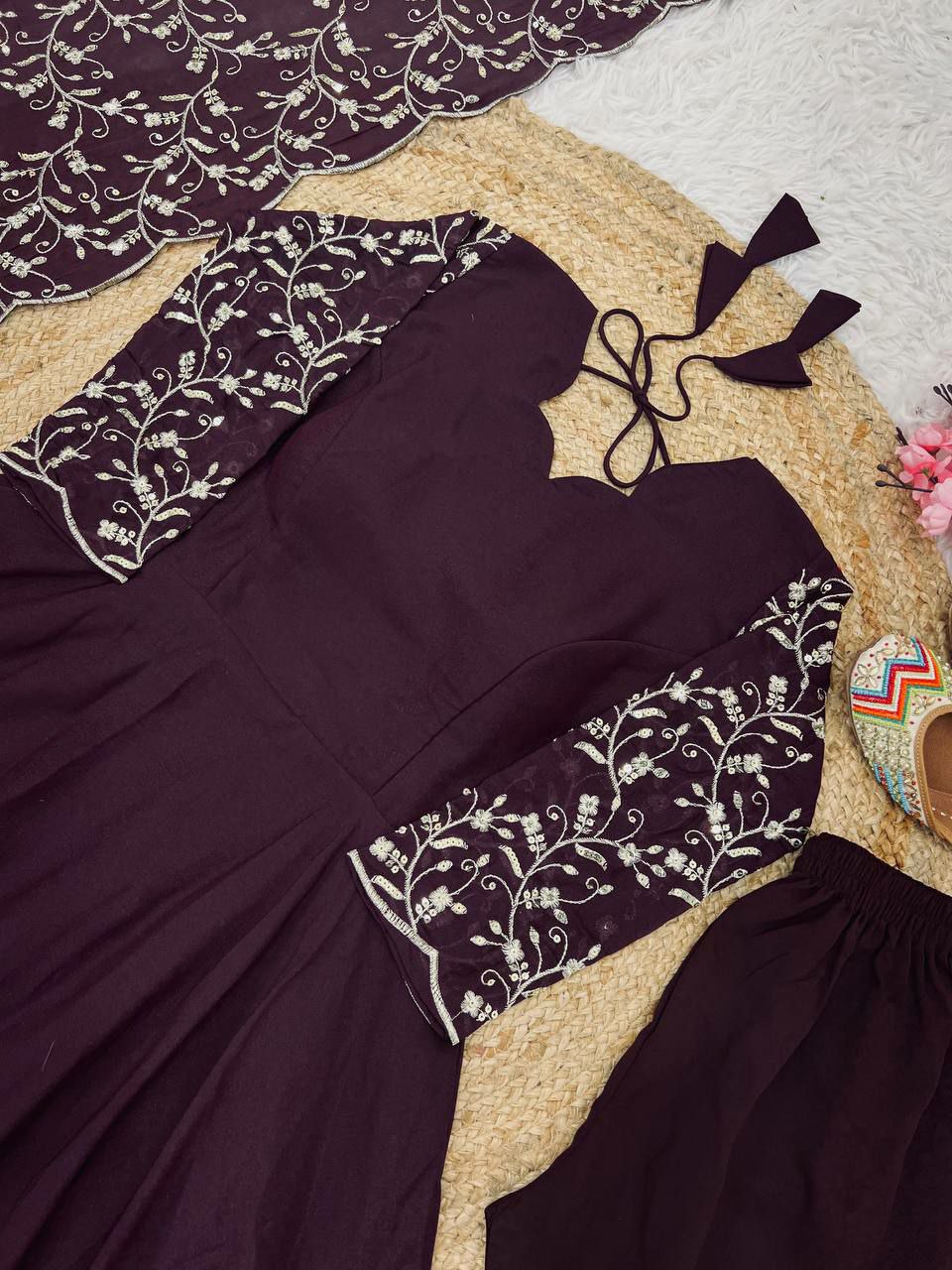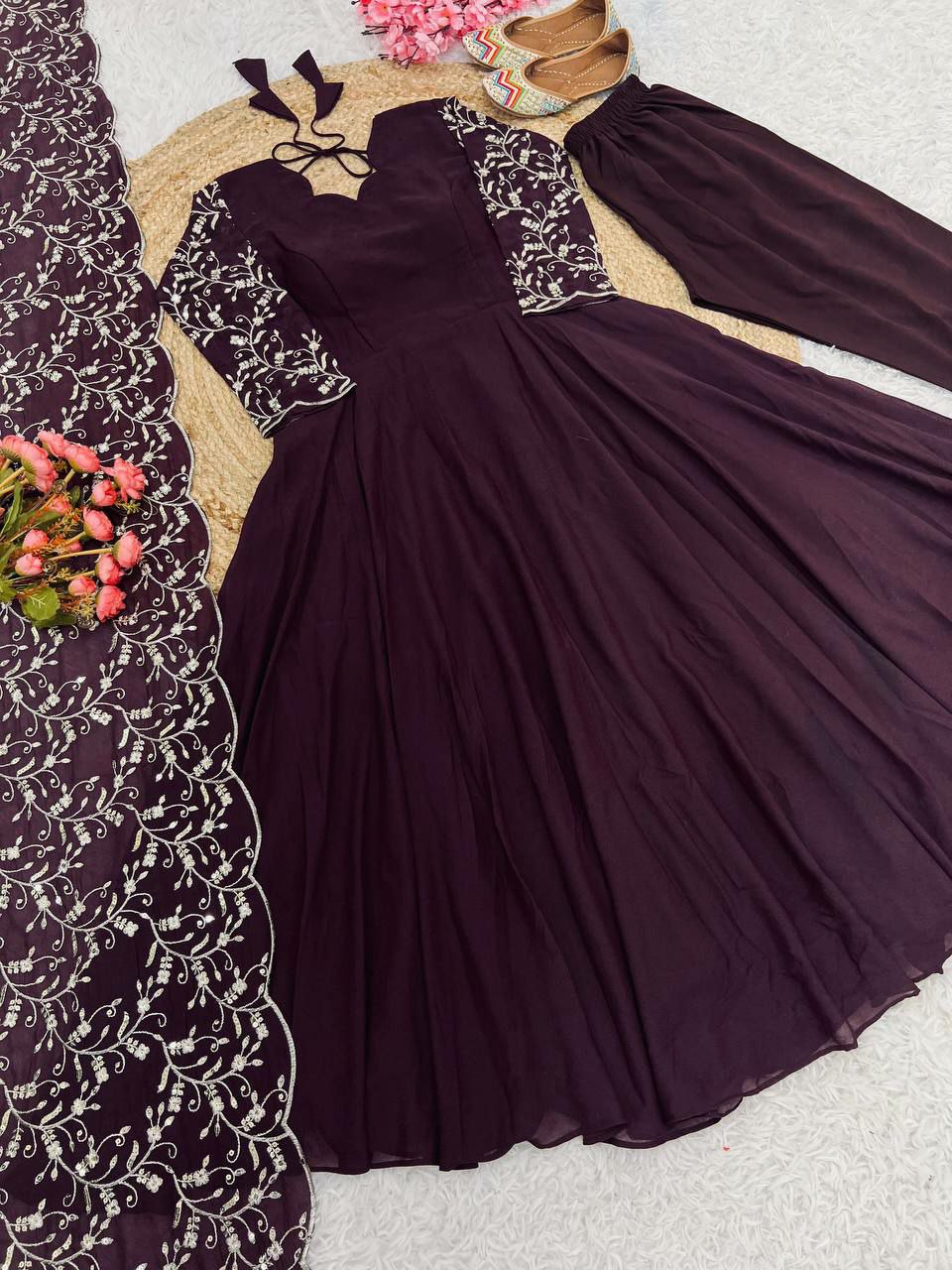 STAR GEORGETTE With Embroidery Sequence Work With Attached Cups With Fully Flair Kurti Set