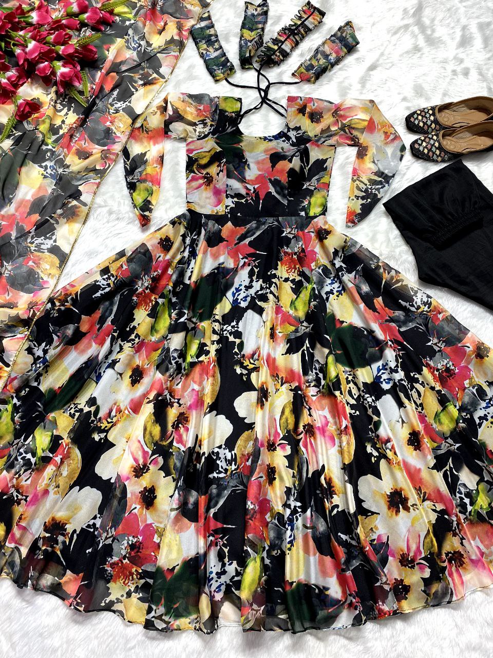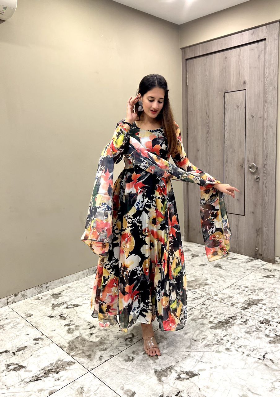 Tabhi Organza Material With Digital Print ( Fully Sleeves ) Anarkali Dress