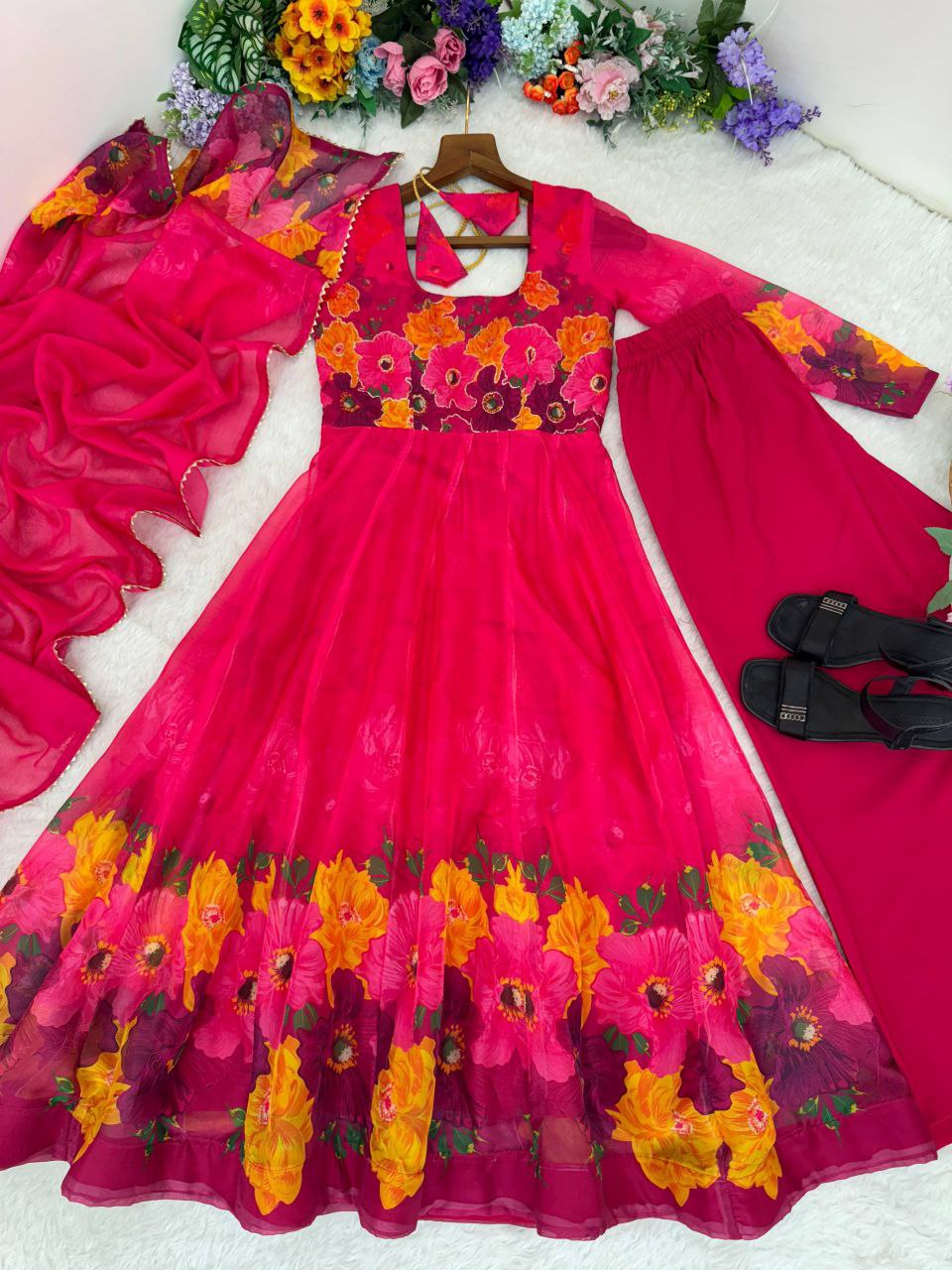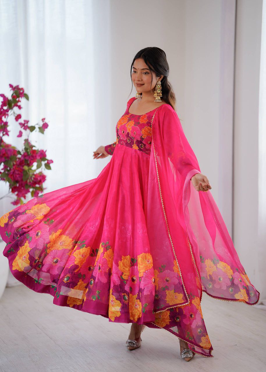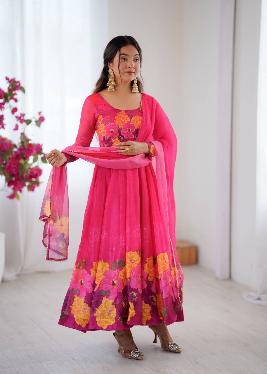Gown Febrics Organza Soft Taby Silk Heavy Quality Fabric With Digital Print
